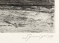 2004. Radierung / Strichätzung, Roulette & Zuckertusche, auf Büttenpapier. – Originale Künstlergrafik, von Reinhard Springer. – Auflage Exemplar Nr. 46/50. – 10,0 x 26,9 cm (Darstellung / Platte), 26,5 x 39,3 cm (Blatt).