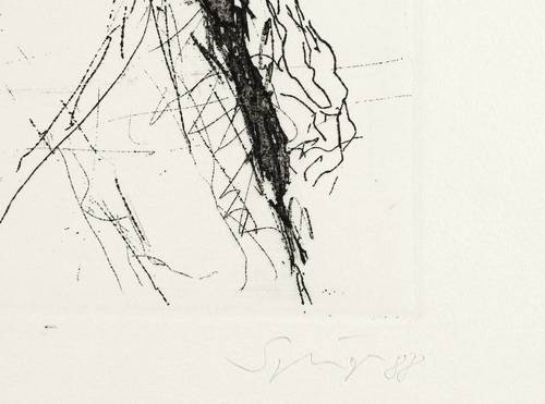 1988. Radierung / Reservage & Roulette, in Schwarz, auf hellchamois Büttenpapier. – Originale Künstlergrafik, von Reinhard Springer. – Auflage Exemplar Nr. 28/30. – 32,0 x 24,5 cm (Darstellung / Platte), 54 x 40 cm (Blatt).