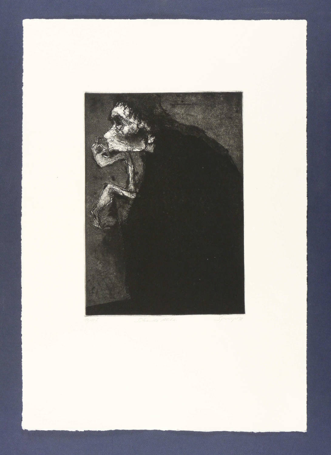 1998. Radierung / Strichätzung, Kaltnadel & Aquatinta, in Schwarz, auf Hahnemühle-Bütten. – Originale Künstlergrafik, von Reinhard Springer. – Auflage Exemplar Nr. 10/10 I. – 29,3 x 21,0 cm (Darstellung / Platte), 53,5 x 37,0 cm (Blatt).