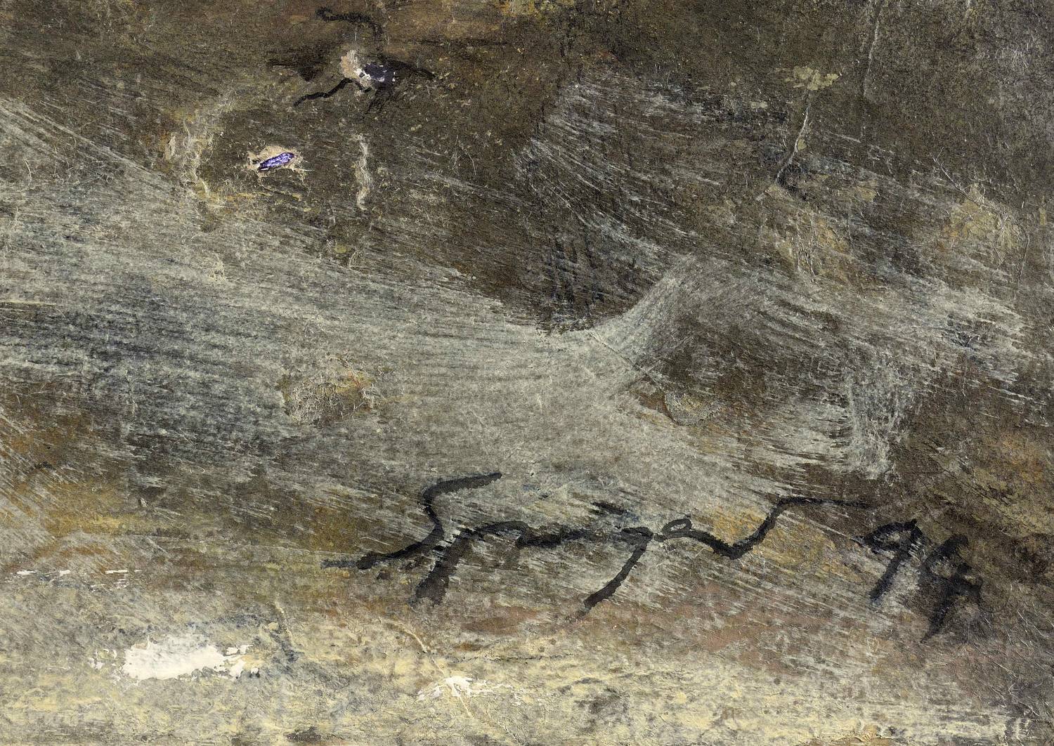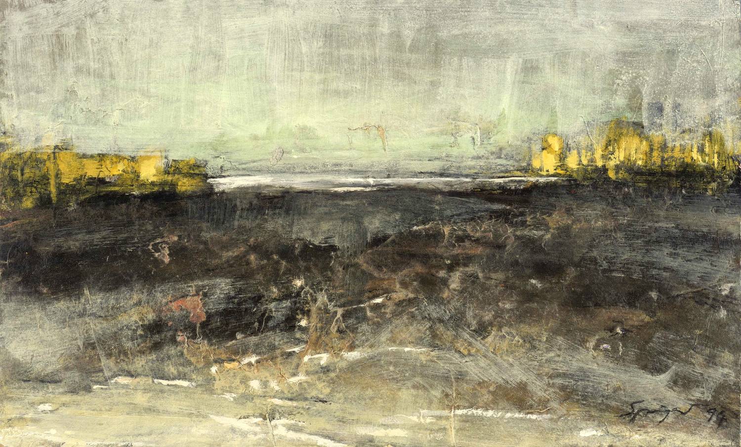 Rechts unten in Tusche signiert und datiert. Verso signiert, datiert und betitelt. Dazu die Werknummer: ″AaP 36/94″. – Durch den Arbeitsprozess entstandene Fehlstellen. Diese selbst vom Künstler hinterlegt. Blatt an den Kanten etwas bestoßen. Insgesamt guter Erhaltungszustand.
