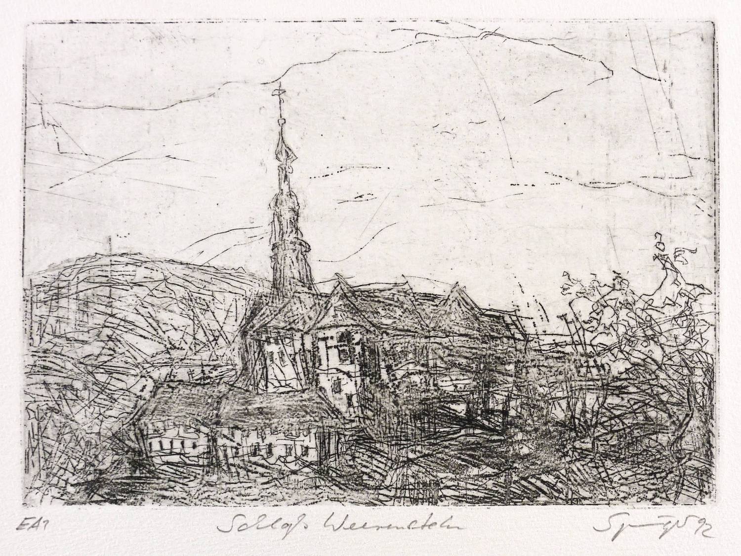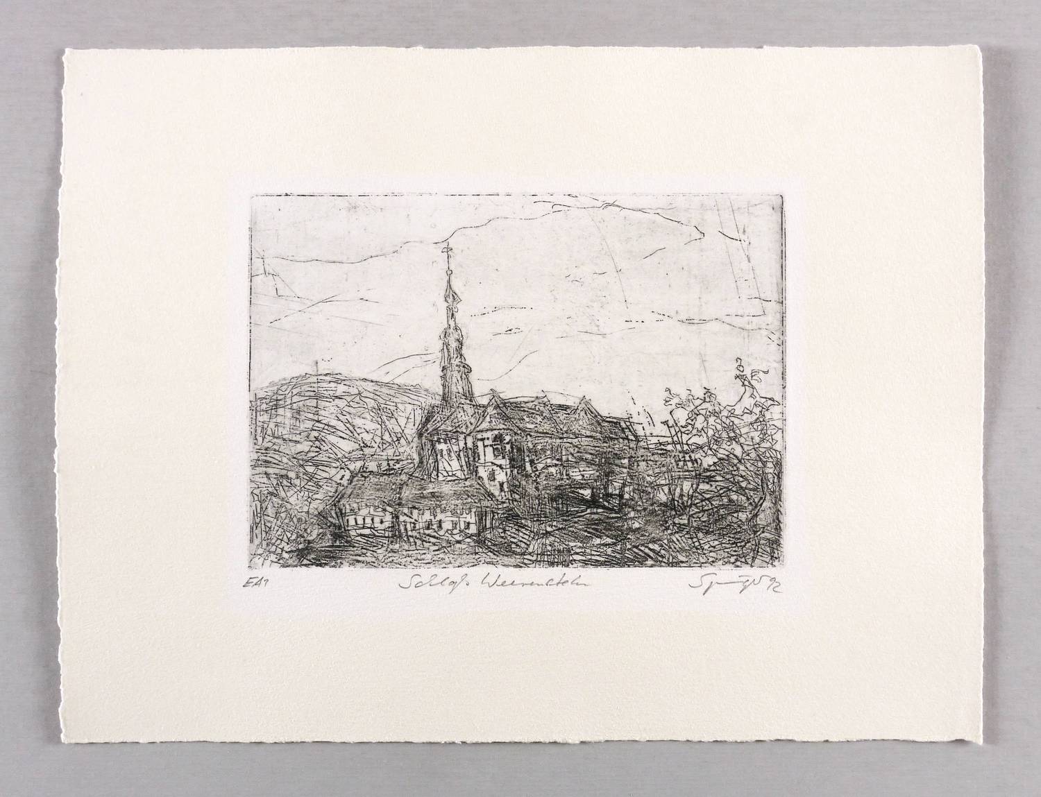 Rechts unten in Bleistift signiert und datiert: ″Springer 92″. Rechts Auflagenbezeichnung. Mittig Titel: ″Schloß Weesenstein″. – Sehr guter Zustand.