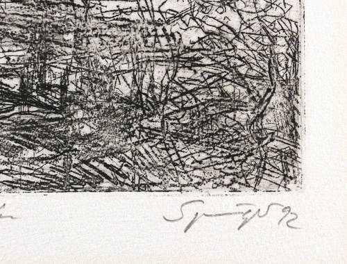 1992. Radierung / Reservage & Strichätzung, in Schwarz, auf hellchamois Hahnemühle. – Originale Künstlergrafik, von Reinhard Springer. – Künstlerexemplar (e.a.). – 14,3 x 20,4 cm (Darstellung / Platte), 27 x 36 cm (Blatt).