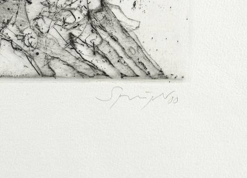 2000. Radierung / Strichätzung, Kaltnadel, Aquatinta & Roulette, in Schwarz, auf hellchamois Bütten. – Originale Künstlergrafik, von Reinhard Springer. – Auflage Exemplar Nr. 3/9. – 38,4 x 28,1 cm (Darstellung / Platte), 53 x 40 cm (Blatt).