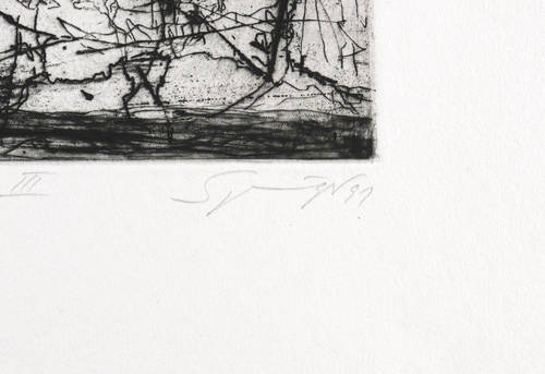 1991. Radierung / Strichätzung, Kaltnadel, Aquatinta & Reservage, in Schwarz, auf festem hellchamois Bütten. – Originale Künstlergrafik, von Reinhard Springer. – Künstlerexemplar (e.a.). – 32,1 x 25,9 cm (Darstellung / Platte), 54 x 38 cm (Blatt).