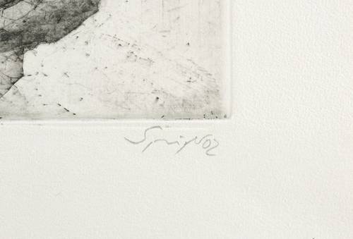 Rechts unten in Bleistift signiert und datiert: ″Springer 02″. Links Auflagenbezeichnung: ″PD″. Mittig Titel: ″Homeless 8″. Wasserzeichen der Hahnemühle. – Provenienz: Sammlung Dr. Ingrid und Prof. Dr. Albrecht Scholz, Dresden. – Sehr guter Zustand.