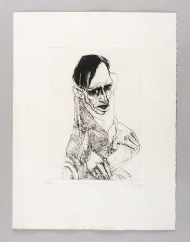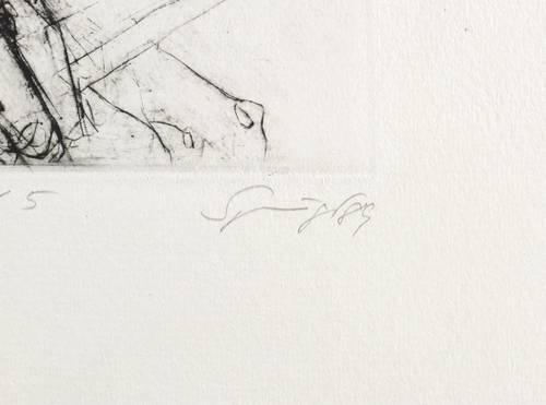Rechts unten in Bleistift signiert und datiert: ″Springer 89″. Links Auflagenbezeichnung: ″E.A.″ Mittig Titel: ″Im Rollstuhl 5″. Im unteren Blattrand persönliche Widmung des Künstlers. – Provenienz: Sammlung Dr. Ingrid und Prof. Dr. Albrecht Scholz, Dresden. – Sehr guter Zustand.
