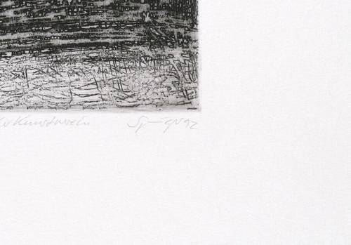 1992. Radierung / Roulette, Reservage & Strichätzung, in Schwarz, auf hartem hellchamois Velin. – Originale Künstlergrafik, von Reinhard Springer. – Künstlerexemplar (e.a.). – 10,1 x 12,3 cm (Darstellung / Platte), 51 x 39 cm (Blatt).