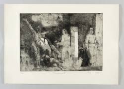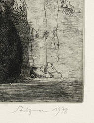 1978. Radierung / Strichätzung & Kaltnadel, in Schwarz, auf gelblichem Karton. – Originale Künstlergrafik, von Volker Stelzmann. – Auflage Exemplar Nr. 3/50. – 24,8 x 34,9 cm (Darstellung / Platte), 34 x 48 cm (Blatt).