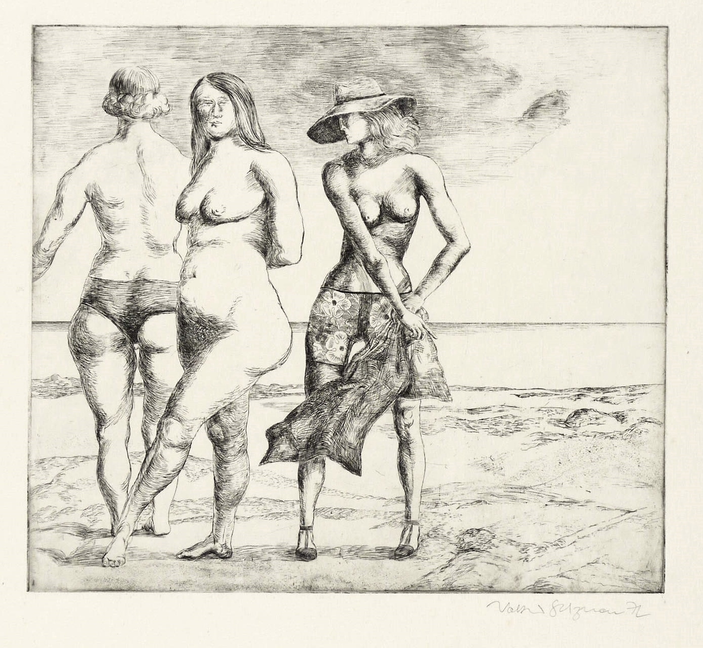 Stelzmann, Volker. – „Strand II (Drei Frauen am Strand)”.