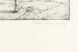 1972. Radierung / Strichätzung, in Schwarz, auf hartem hellgelbem Papier. – Originale Künstlergrafik, von Volker Stelzmann. – Künstlerexemplar (e.a.). – 21,4 x 24,1 cm (Darstellung / Platte), 50 x 38 cm (Blatt).