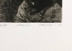 1979. Radierung / Strichätzung, Grund geschliffen, in Schwarz, mit Plattenton, auf schwerem Velin. – Originale Künstlergrafik, von Volker Stelzmann. – Auflage Exemplar Nr. 6/10. – 15,7 x 12,6 cm (Darstellung / Platte), 45 x 35 cm (Blatt).