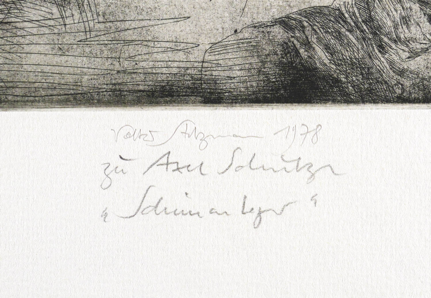 Behrends-Musinowski 86. – Unterhalb in Bleistift signiert und datiert: ″Volker Stelzmann 1978″. Darunter Titel: ″zu Axel Schulze 'Schienenleger'″. Links Auflagenbezeichnung. ″2. Druck″. – Sehr guter Zustand.
