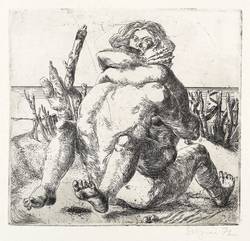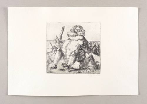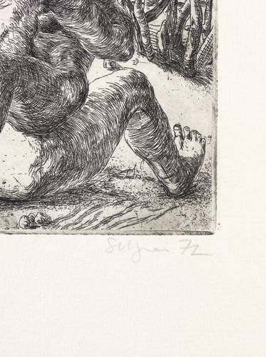 1972. Radierung / Strichätzung, in Schwarz, auf festem hellchamois Velin. – Originale Künstlergrafik, von Volker Stelzmann. – 14,7 x 15,6 cm (Darstellung / Platte), 26 x 38 cm (Blatt).