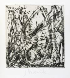 2003. Radierung / Strichätzung, 6 Blätter, in Schwarz, auf hellgelbem Hahnemühle. – Originales Künstlerbuch, von Strawalde (Jürgen Böttcher). – Künstlerexemplar (e.a.). – 38,0 x 28,0 cm (Einband), 37,5 x 27,5 cm (Blätter).