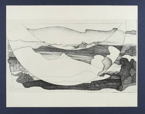 1967. Radierung / Strichätzung, in Schwarz, auf hellchamois Velinkarton. – Originale Künstlergrafik, von Peter Sylvester. – Auflage Exemplar Nr. 32/75. – 28,0 x 48,7 cm (Darstellung / Platte), 38,5 x 49,5 cm (Blatt).