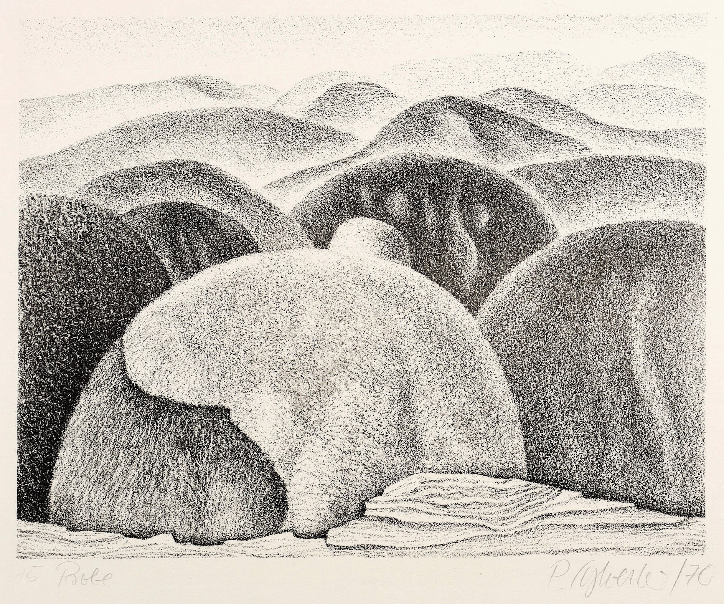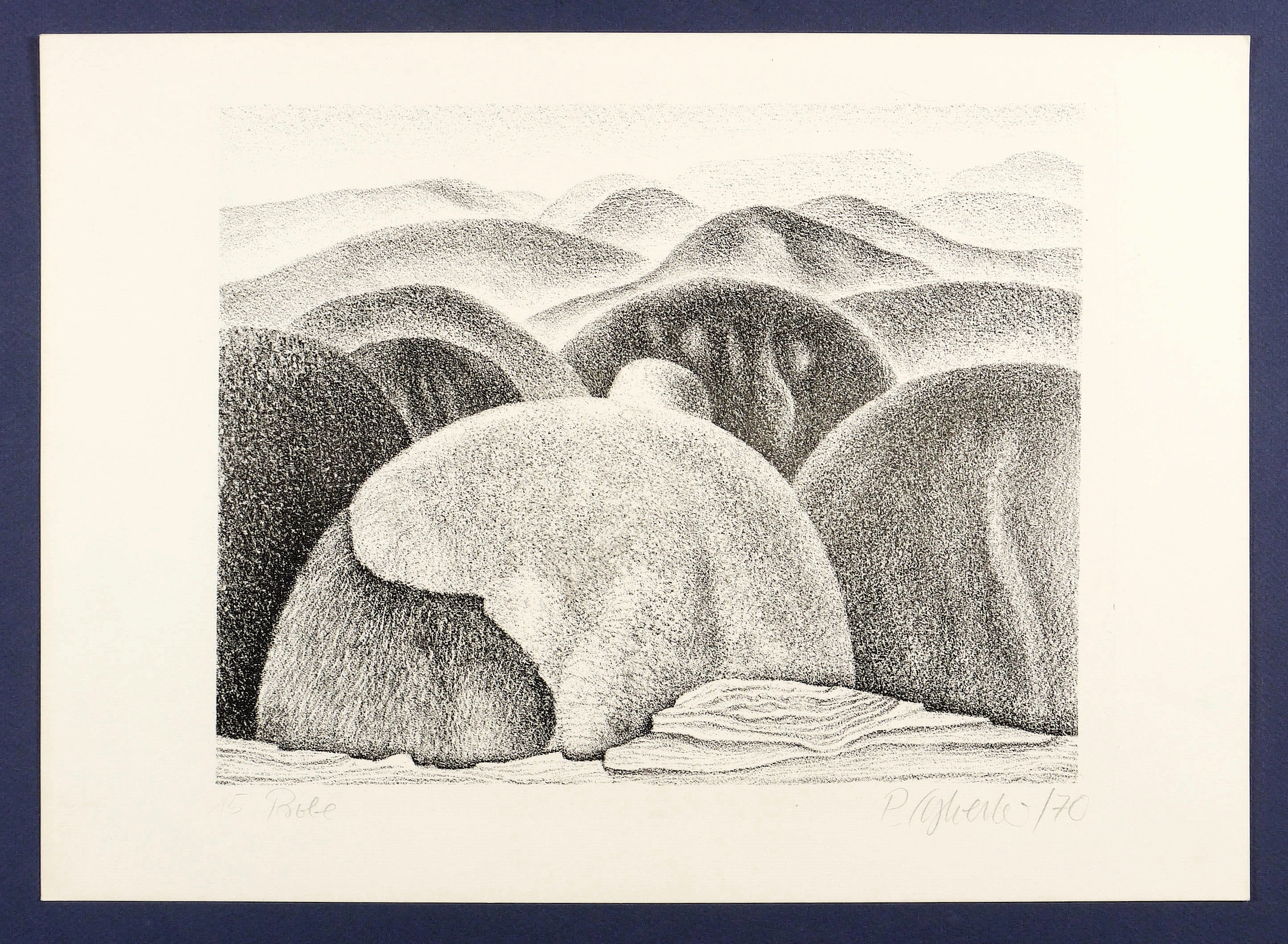 1969/1970. Lithografie / Kreidelithografie, in Schwarz, auf hellem Velinkarton. – Originale Künstlergrafik, von Peter Sylvester. – Probedruck Exemplar Nr. 15. – 23,4 x 29,7 cm (Darstellung / Druckbild), 30 x 42 cm (Blatt).