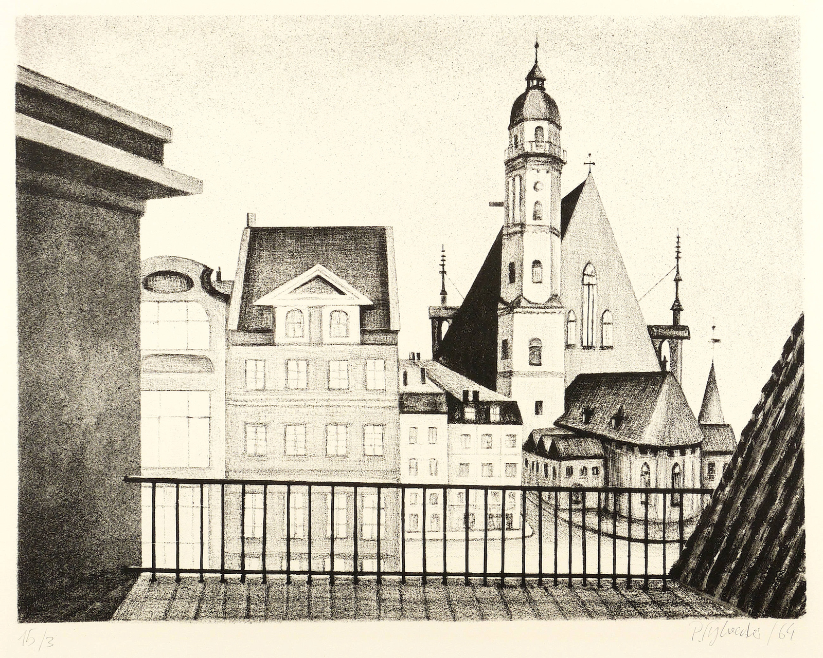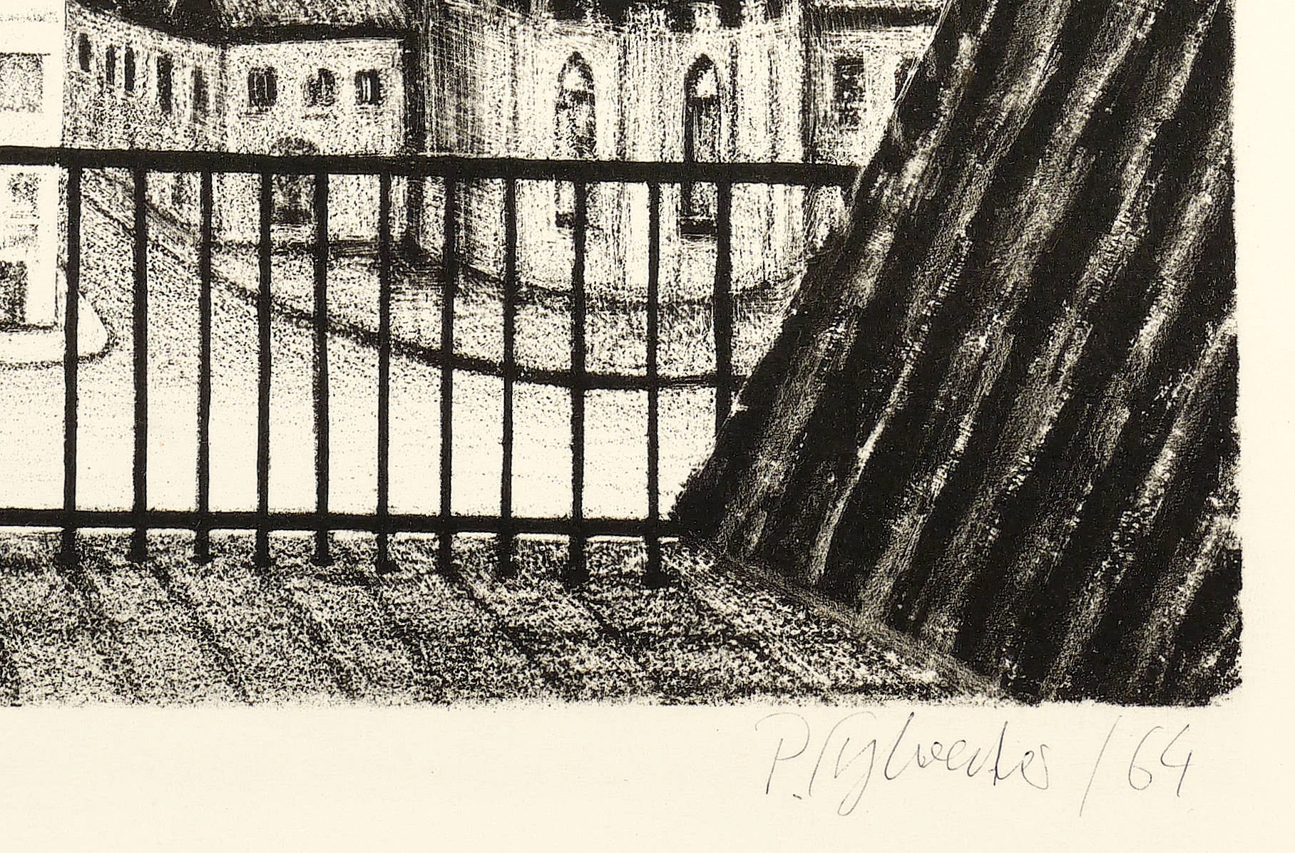 1964. Lithografie / Kreidelithografie, partiell geschabt & gespritzt, in Schwarz, auf hellem Karton. – Originale Künstlergrafik, von Peter Sylvester. – Auflage Exemplar Nr. 3/15. – 36,1 x 46,5 cm (Darstellung), 49 x 62 cm (Blatt).