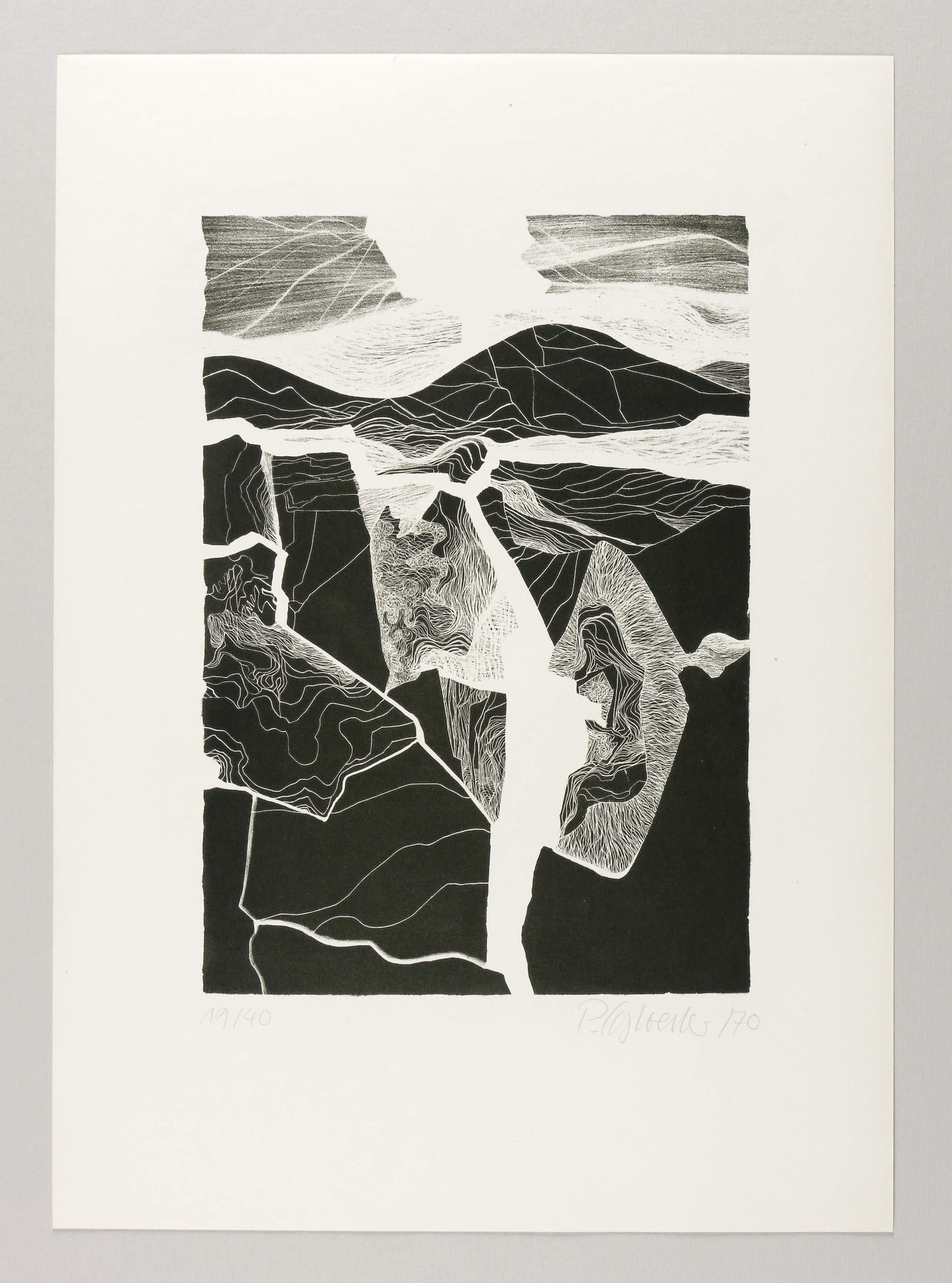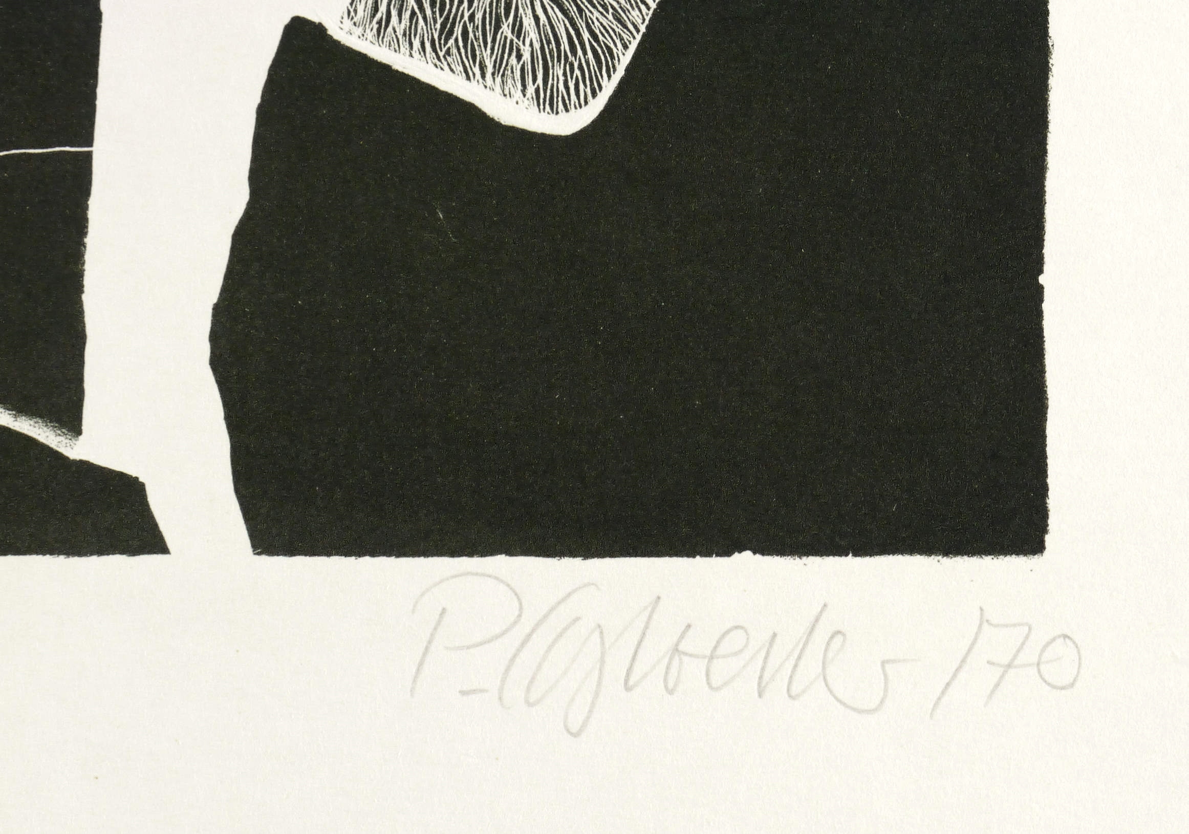 1970. Lithografie / Schablithografie, in Schwarz, auf weißem Karton. – Originale Künstlergrafik, von Peter Sylvester. – AUflage Exemplar Nr. 19/40. – 27,6 x 19,4 cm (Darstellung), 42 x 30 cm (Blatt).