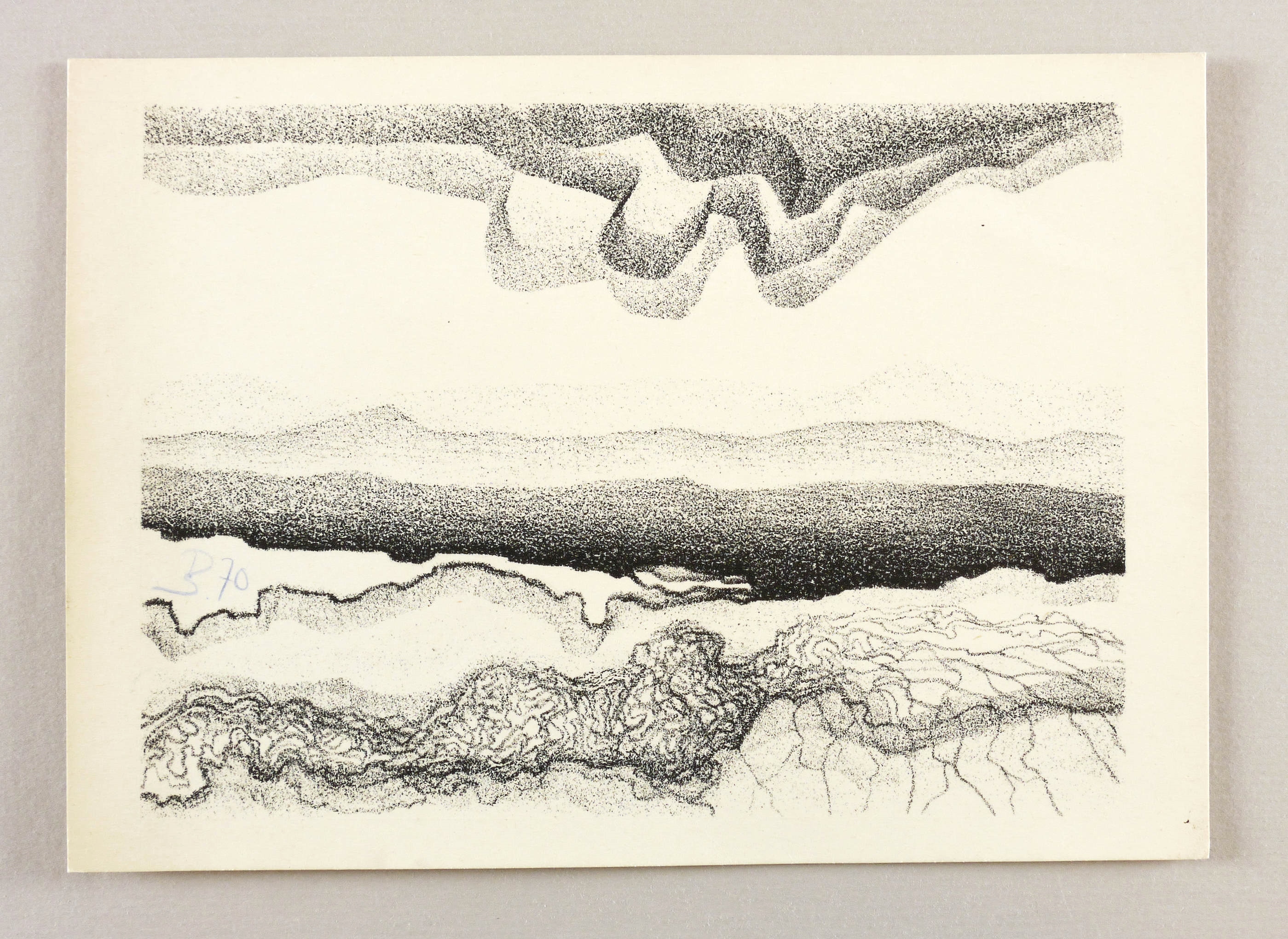 Nicht bei Penndorf. – In der Darstellung links in Bleistift monogrammiert und datiert: ″PS. 70″. Verso in Kugelschreiber persönliche Widmung. – Papier altersbedingt leicht gegilbt. Sehr guter Zustand.