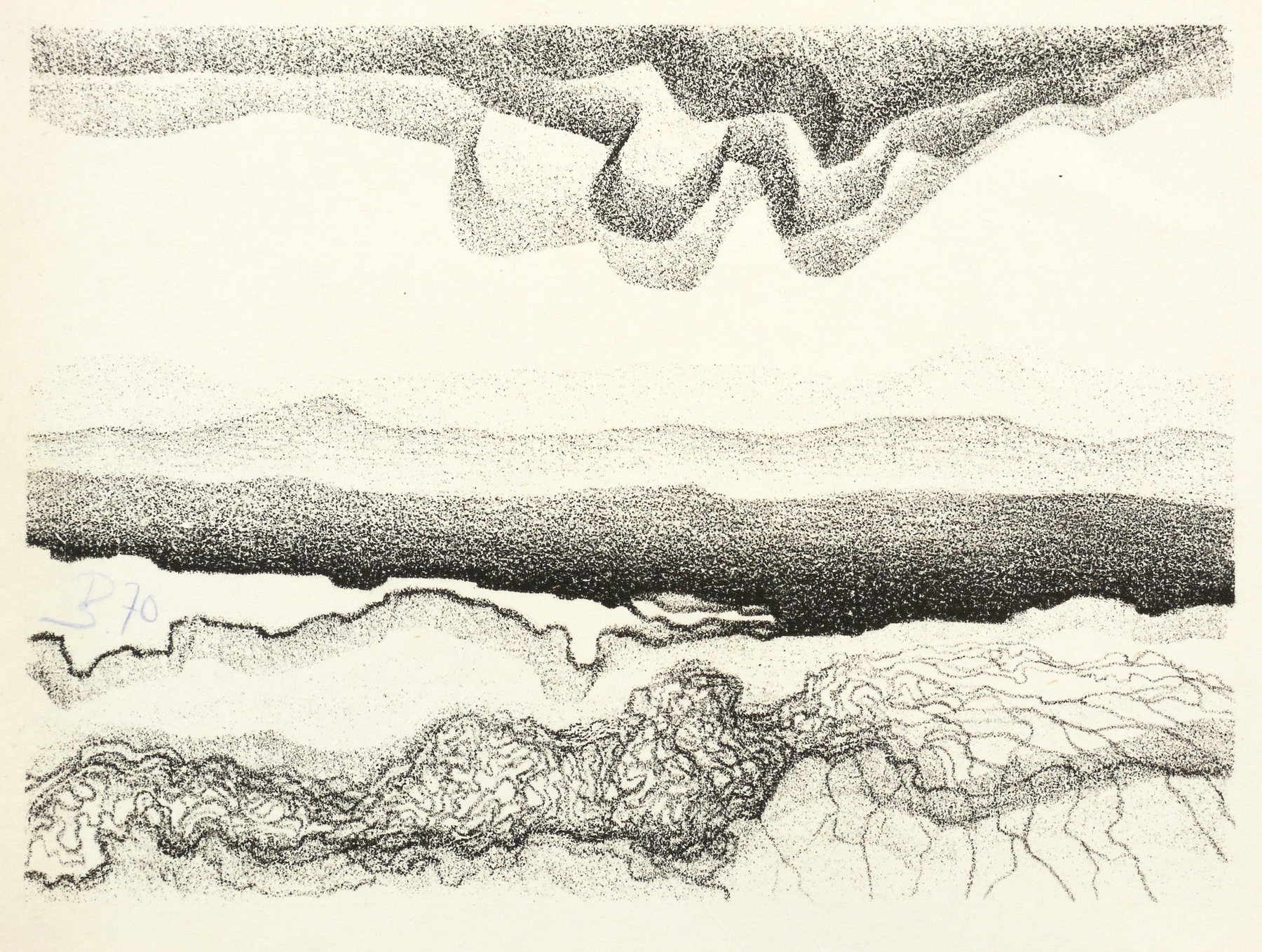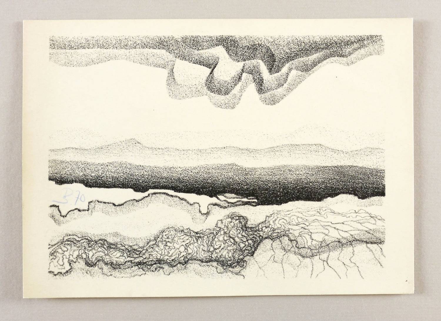 1970. Lithografie / Kreidelithografie, in Schwarz, auf hellem Karton. – Originale Künstlergrafik, von Peter Sylvester. – 13,2 x 18,1 cm (Darstellung / Druckbild), 15 x 21 cm (Blatt).