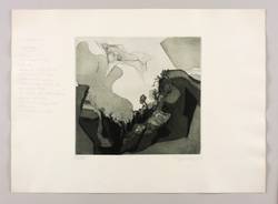 1969. Radierung / Strichätzung & Aquatinta, in Schwarz, auf glattem gelbem Velinkarton. – Originale Künstlergrafik, von Peter Sylvester. – Auflage Exemplar Nr. 14/50. – 22,6 x 23,8 cm (Darstellung / Platte), 35 x 48 cm (Blatt).