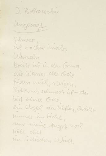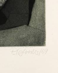 Penndorf 90. – Rechts unten in Bleistift signiert und datiert: ″P. Sylvester / 69″. Links Auflagenbezeichnung. Im linken Blattrand das Gedicht: ″J. Bobrowski // Ungesagt // Schwer, / ich wachse hinab, / Wurzeln / breite ich in den Grund / (...)″. – Unbeschnittenes vollrandiges Exemplar. Sehr guter Zustand.