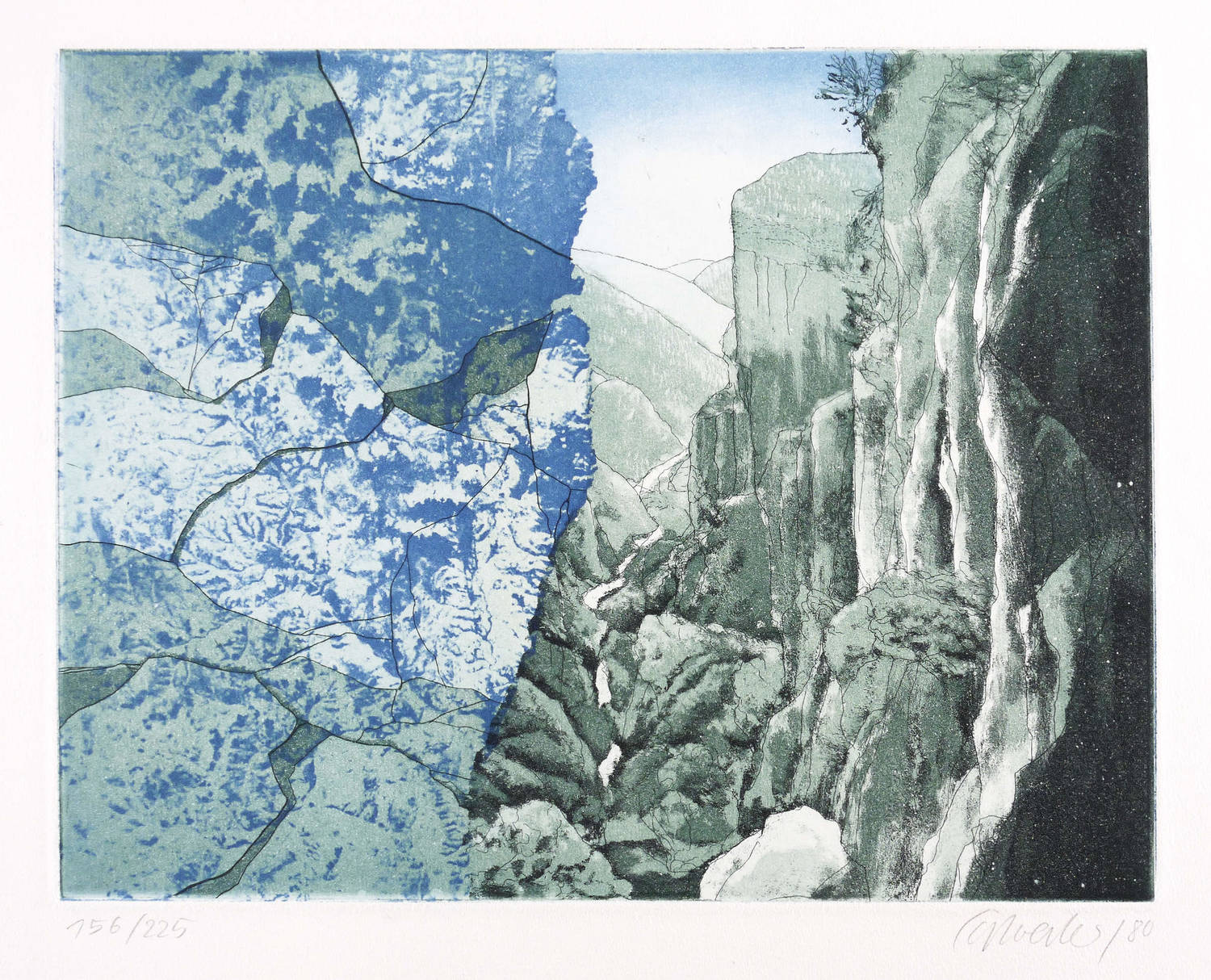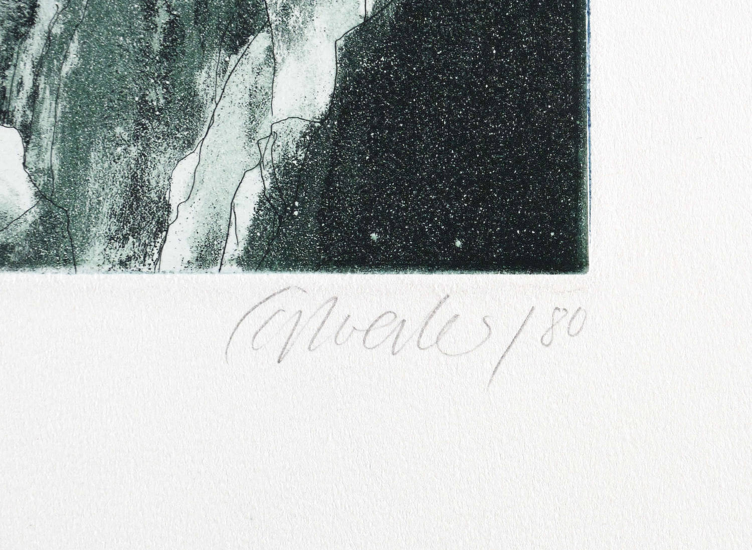 1980. Farbradierung / Strichätzung & Aquatinta, in Blau, Grün & Schwarz, auf Hahnemühle-Bütten. – Originale Künstlergrafik, von Peter Sylvester. – Auflage Exemplar Nr. 156/225. – 24,9 x 32,1 cm (Darstellung / Platte), 40 x 50 cm (Blatt).