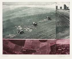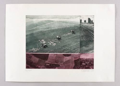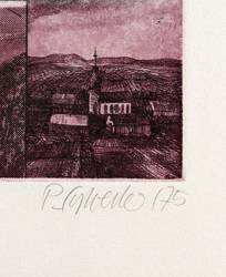 1975. Farbradierung / Aquatinta, in Schwarzviolett & Schwarzgrün, auf hartem hellgelbem Velin. – Originale Künstlergrafik, von Peter Sylvester. – Auflage Exemplar Nr. 12/150. – 34 x 48 cm (Blatt), 23,4 x 29,8 cm (Darstellung / Platte).