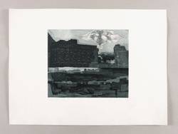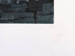 1970. Radierung / Strichätzung & Aquatinta, in Blauschwarz, auf festem hellchamois Velin. – Originale Künstlergrafik, von Peter Sylvester. – Künstlerexemplar (e.a.) Nr. V. – 20,4 x 24,2 cm (Darstellung / Platte), 35 x 48 cm (Blatt).