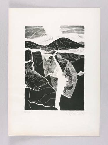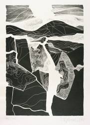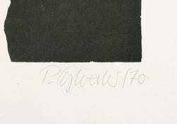 1970. Lithografie / Schablithografie, in Schwarz, auf weißem Karton. – Originale Künstlergrafik, von Peter Sylvester. – AUflage Exemplar Nr. 40/40. – 27,7 x 19,5 cm (Darstellung), 42 x 30 cm (Blatt).