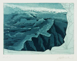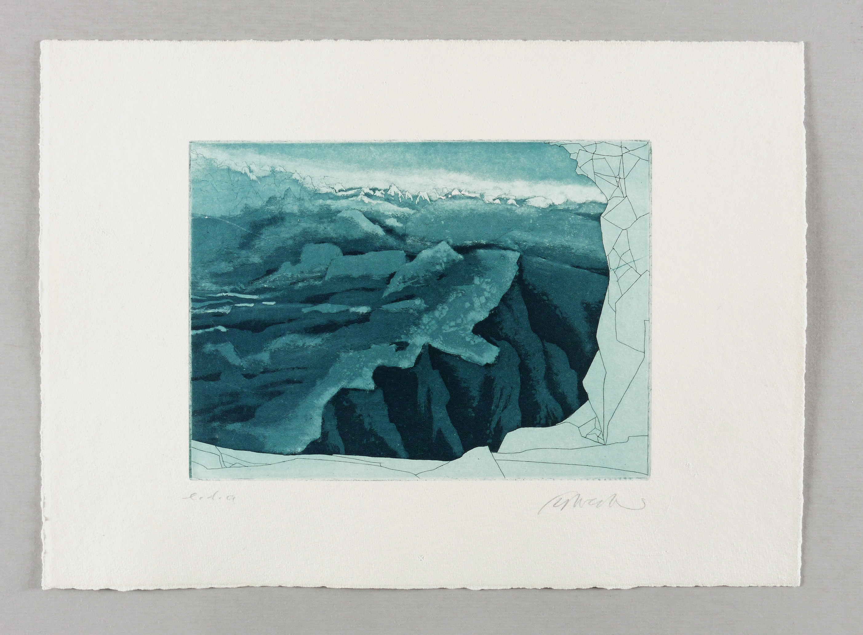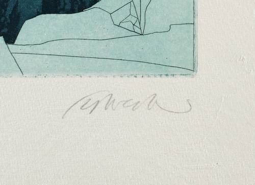 1970. Radierung / Strichätzung & Aquatinta, in Türkis, auf festem hellchamois Velin. – Originale Künstlergrafik, von Peter Sylvester. – Künstlerexemplar (e.a.). – 17,8 x 24,0 cm (Darstellung / Platte), 29 x 40 cm (Blatt).