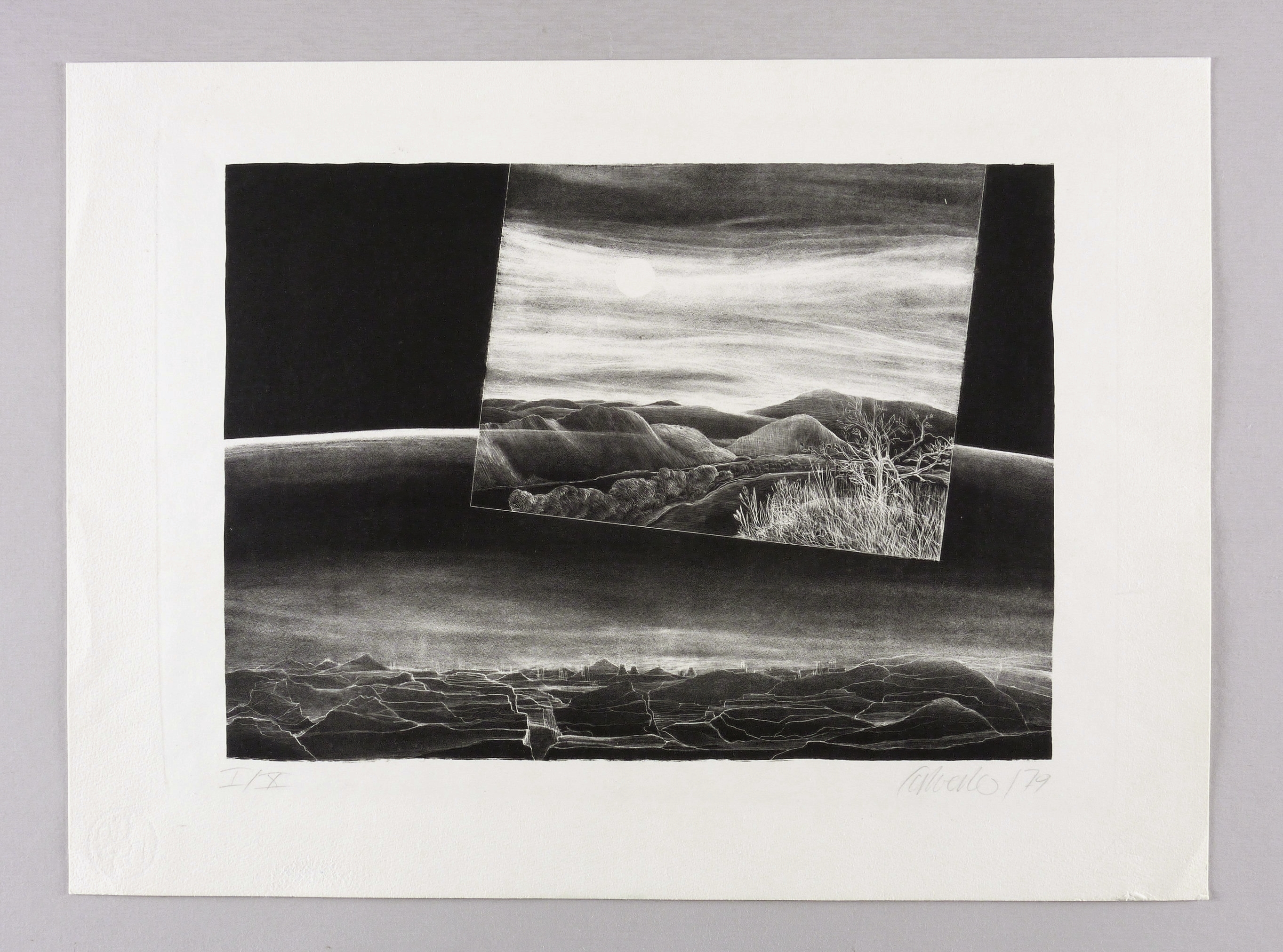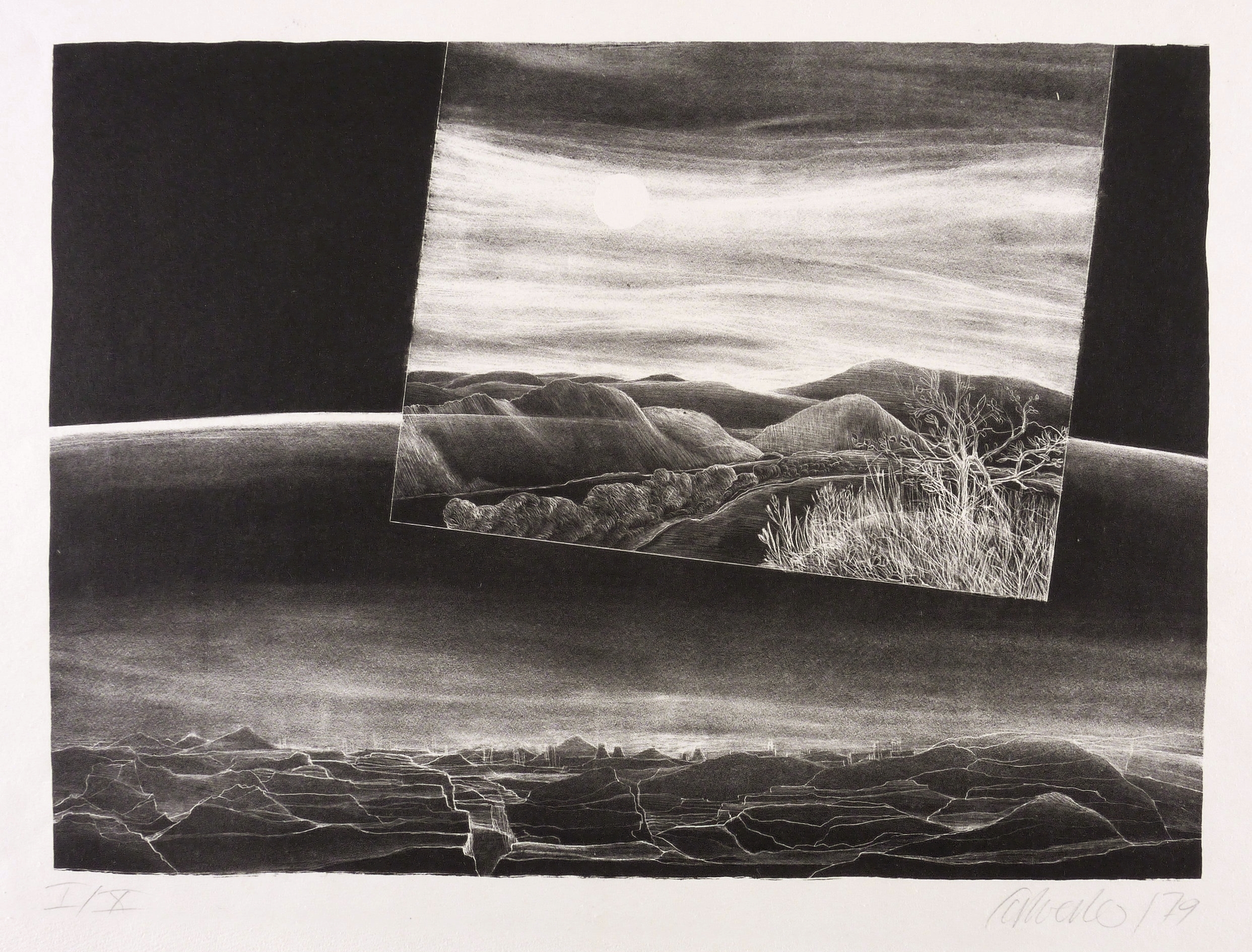 1979. Lithografie / Schablithografie, in Schwarz, auf hellchamois Hahnemühle. – Originale Künstlergrafik, von Peter Sylvester. – Auflage Exemplar Nr. I/X. – 25,2 x 34,8 cm (Darstellung), 36 x 48 cm (Blatt).