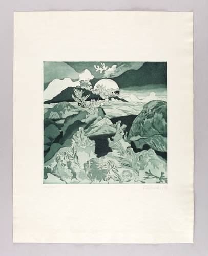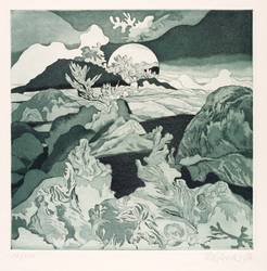 Peter Sylvester (1937 Saalfeld - 2007 Leipzig). Deutscher Maler und Grafiker, bedeutender Vertreter der Leipziger Schule. 1951-54 Ausbildung zum Chemigrafen. In Jena autodidaktische Beschäftigung mit Malerei und Gasthörerschaft am Kunsthistorischen Institut. 1958 Übersiedlung nach Leipzig. Besuch der Abendakademie und der Werkstätten für Lithografie und Radierung der Hochschule für Grafik und Buchkunst (HGB). Seit 1964 freischaffend. 1972 Mitbegründer der 'Leipziger Grafikbörse', deren Vorsitzender er ab 1991 war. Das grafische Werk ist durch die experimentelle Erweiterung klassischer Drucktechniken geprägt. Zuerst entstanden Radierungen, dann fotomechanisch bearbeitete Serigraphien. Ab 1976 bearbeitete er Aquatinta-Radierungen mittels des im Zentralinstitut für Isotopen- und Strahlenforschung der Akademie der Wissenschaften der DDR entwickelten Geräts 'Densitron' - eine Vorform computerbasierter Bildbearbeitung. In seinen Chaoslandschaften durchdringen sich Motive der Phantastik, der Umweltkritik und der Harmoniesehnsucht. Das grafische Werk Sylvesters wurde durch zahlreiche nationale und internationale Ausstellungen sowie namhafte Kunstpreise gewürdigt.