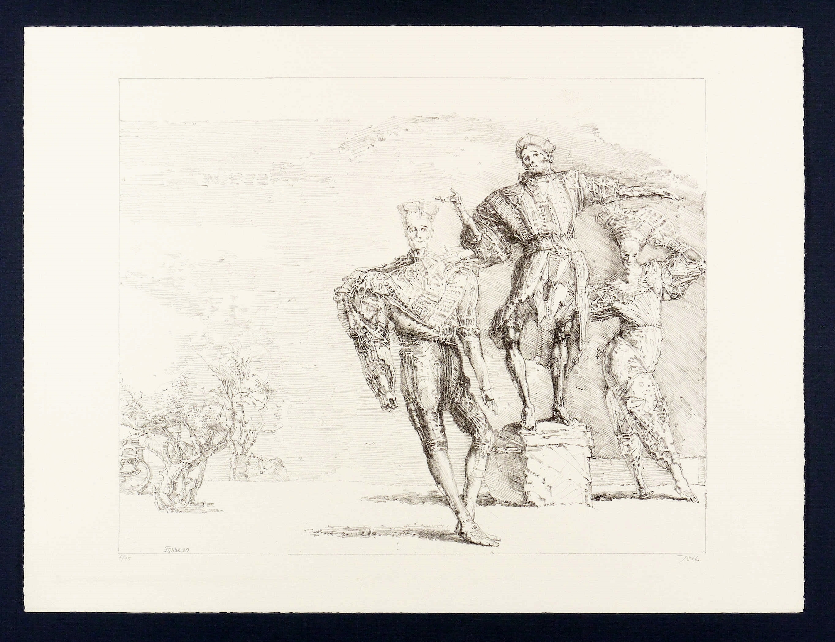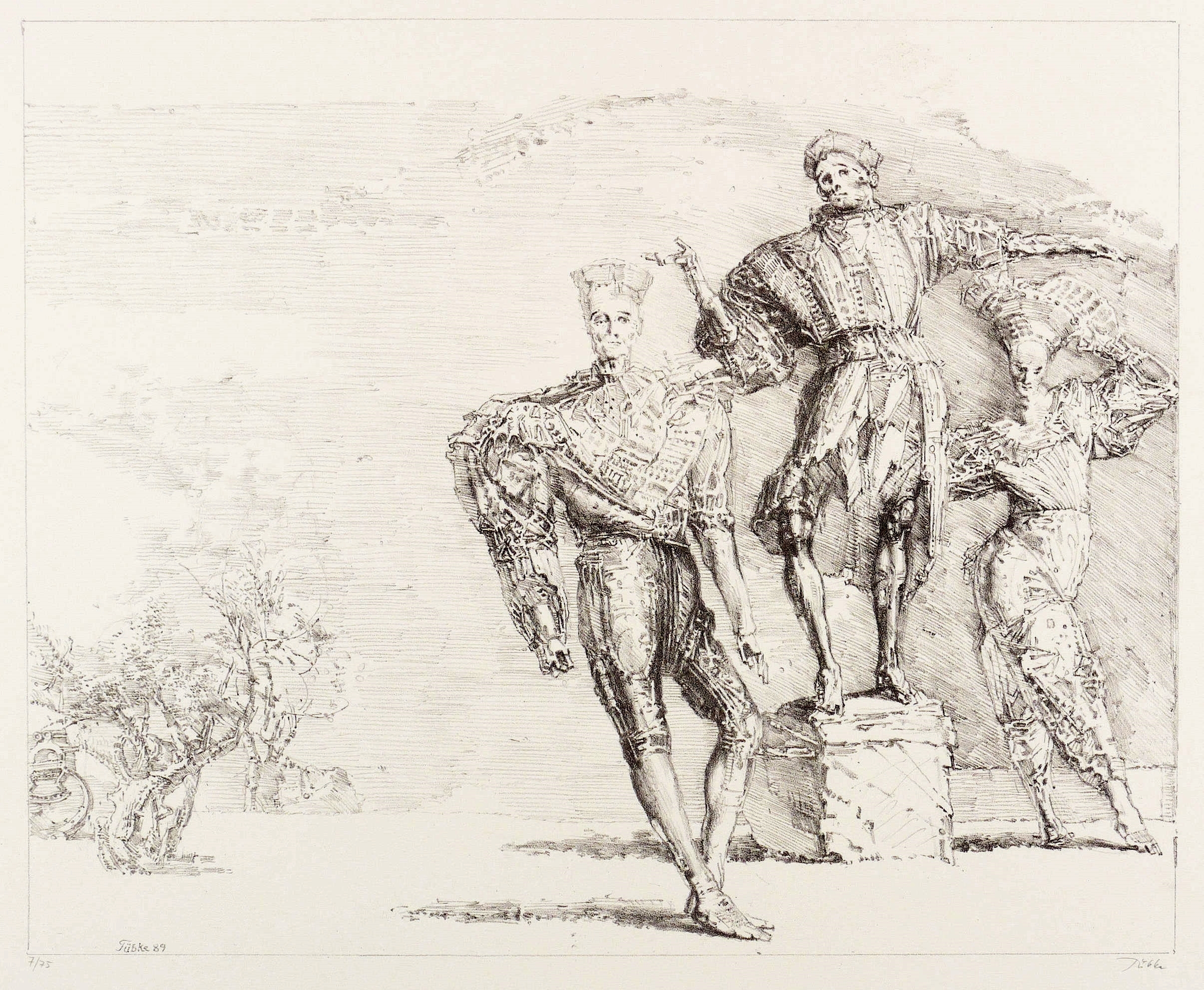 1989. Lithografie / Kreidelithografie, in Schwarz, auf hellchamois Hahnemühle-Bütten. – Von Werner Tübke. – Auflage Exemplar Nr. 7/75. – 32,3 x 39,8 cm (Darstellung), 40 x 53 cm (Blatt).