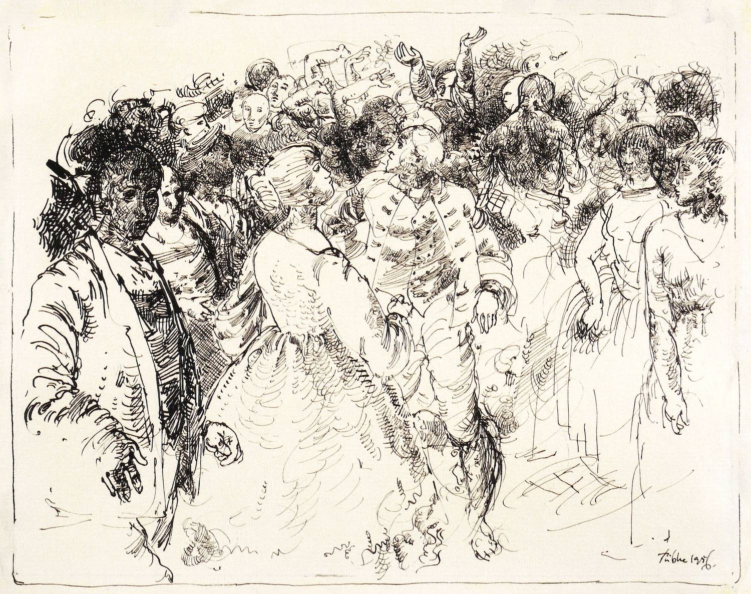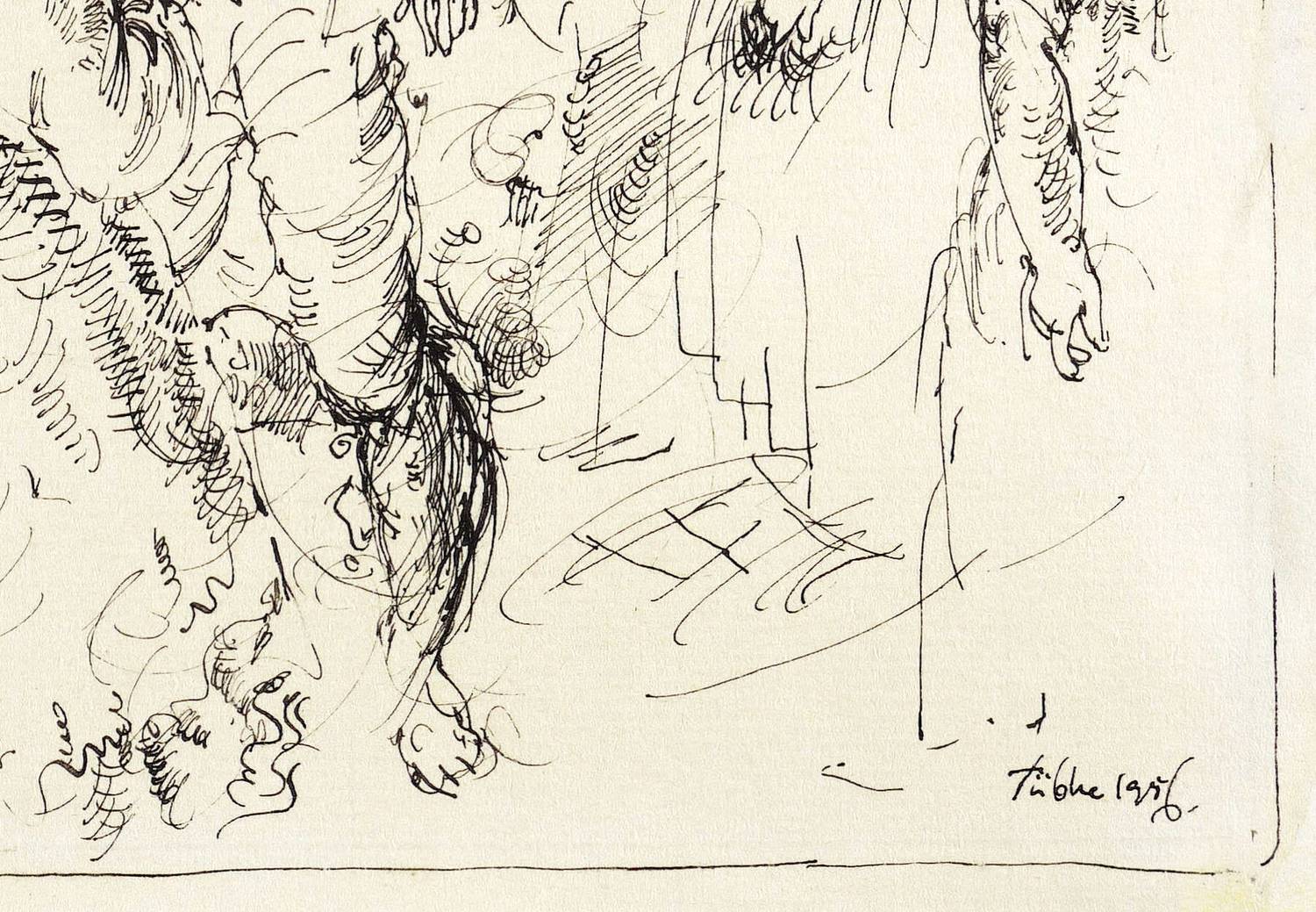 Rechts unten mit Feder signiert und datiert: ″Tübke 1956″. Jahreszahl wohl von fremder Hand in Bleistift korrigiert. – Papier kaum merklich fleckig. Insgesamt aber guter Zustand.