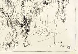 1956. Zeichnung / Federzeichnung, in schwarzer Tusche, auf weißem Büttenpapier. – Originale Künstlergrafik, von Werner Tübke. – Unikat. – 15,3 x 19,3 cm (Darstellung / Einfassungslinie), 17,5 x 21,5 cm (Blatt).