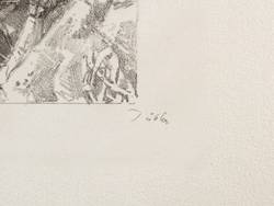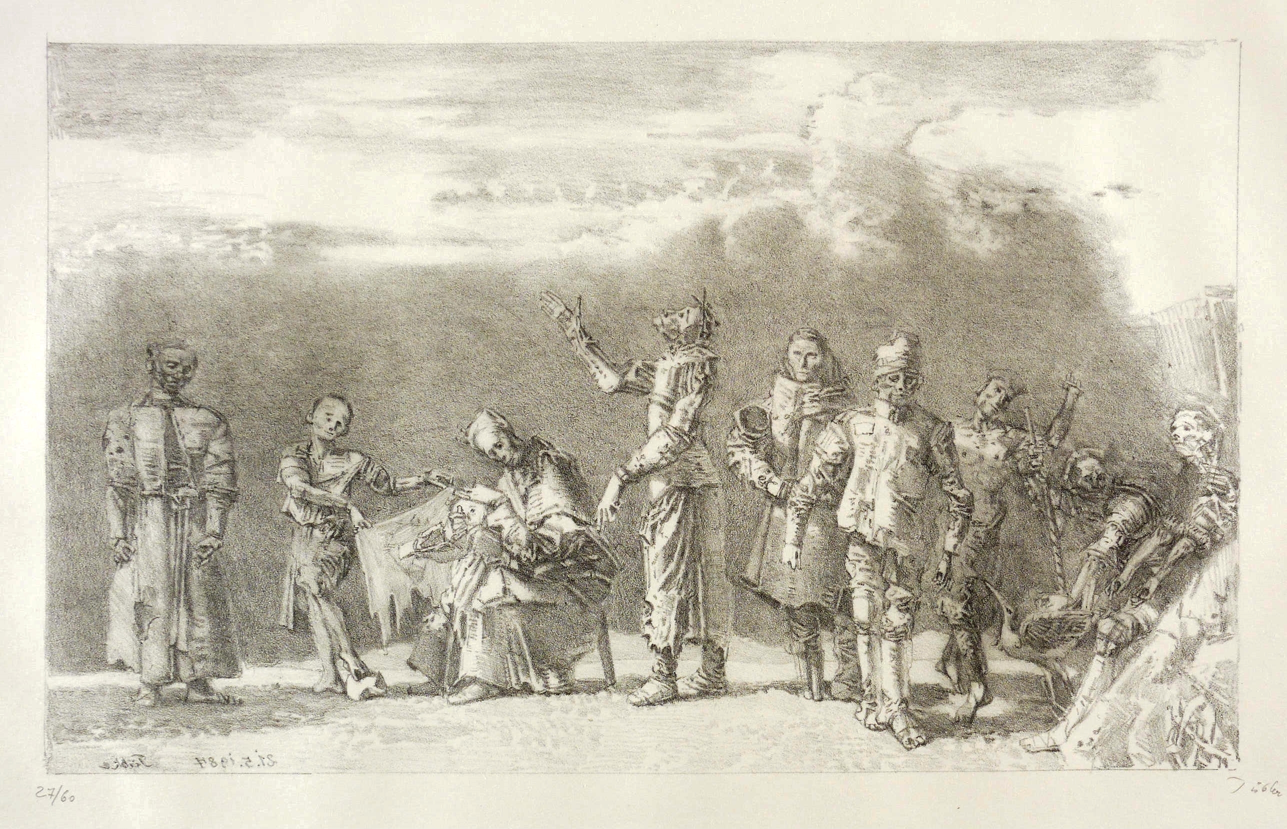 1987. Lithografie / Kreidelithografie, in Schwarz, auf schwerem hellchamois Hahnemühle-Bütten. – Originale Künstlergrafik, von Werner Tübke. – Auflage Exemplar Nr. 27/60. – 22,0 x 36,0 cm (Darstellung / Druckbild), 27,0 x 41,5 cm (Stein), 40 x 54 cm (Blatt).