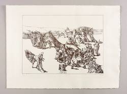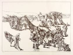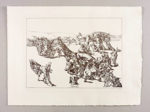 1983. Zinkografie / Federlithografie, in Braunviolett, auf hellem Hahnemühle-Bütten. – Originale Künstlergrafik, von Werner Tübke. – Auflage Exemplar Nr. 4/100. – 27,8 x 38,1 cm (Darstellung), 40 x 54 cm (Blatt).