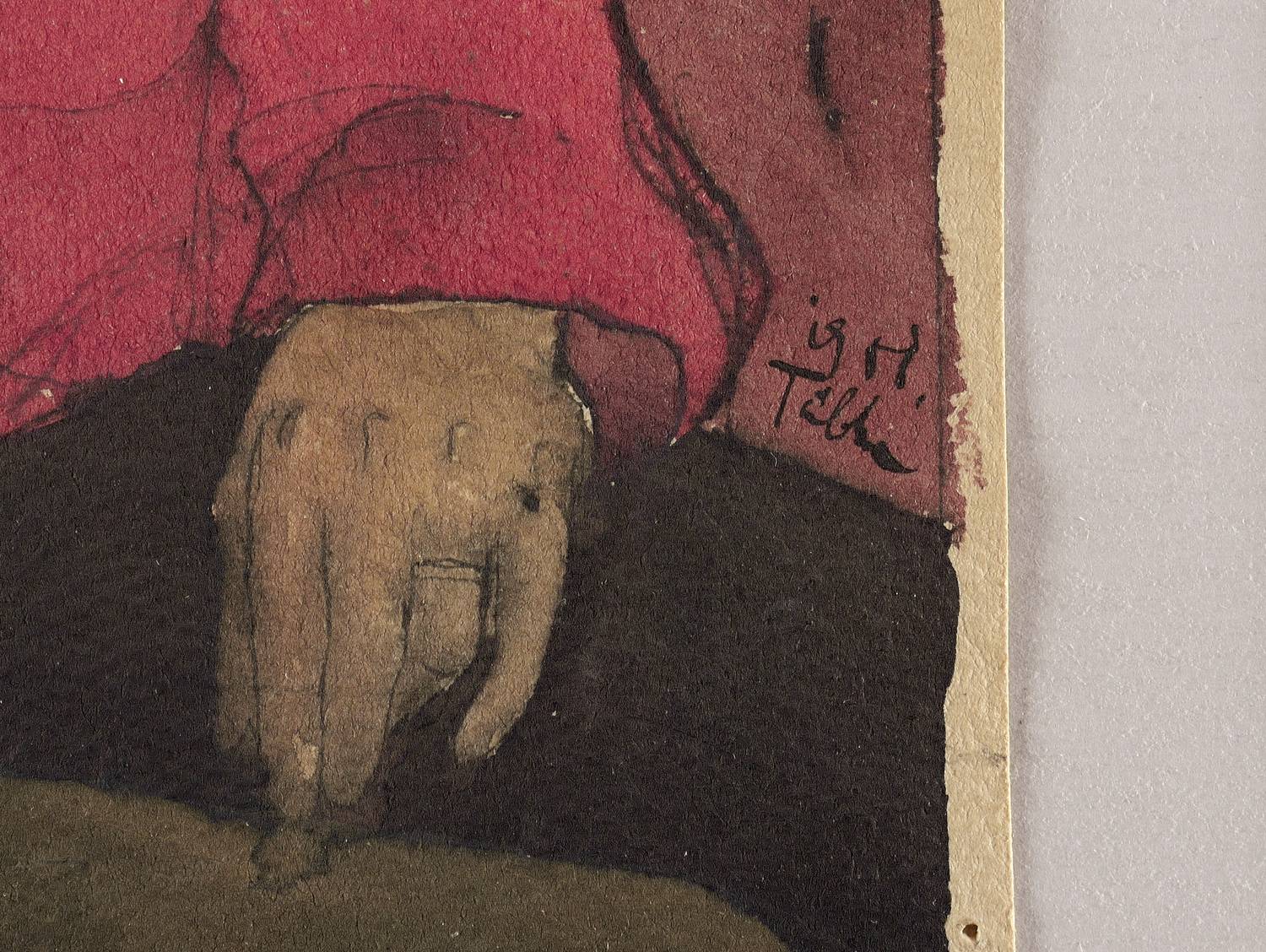 1958. Zeichnung / Aquarell, Gouache & Tusche, auf graugelbem Aquarellkarton. – Originale Künstlergrafik, von Werner Tübke. – Unikat. – 21,2 x 17,3 cm (Blatt), 20,8 x 16,4 cm (Darstellung).