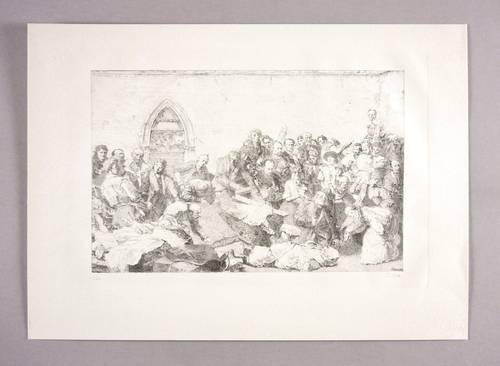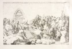 1989. Lithografie / Kreidelithografie, in Schwarz, auf festem hellchamois Hahnemühle. – Originale Künstlergrafik, von Werner Tübke. – Auflage Exemplar Nr. 11/60. – 23,8 x 37,0 cm (Darstellung / dritte), 38 x 52 cm (Blatt).
