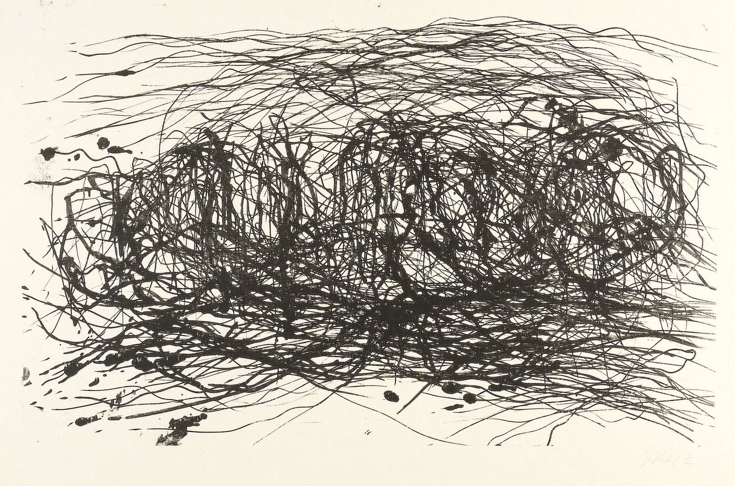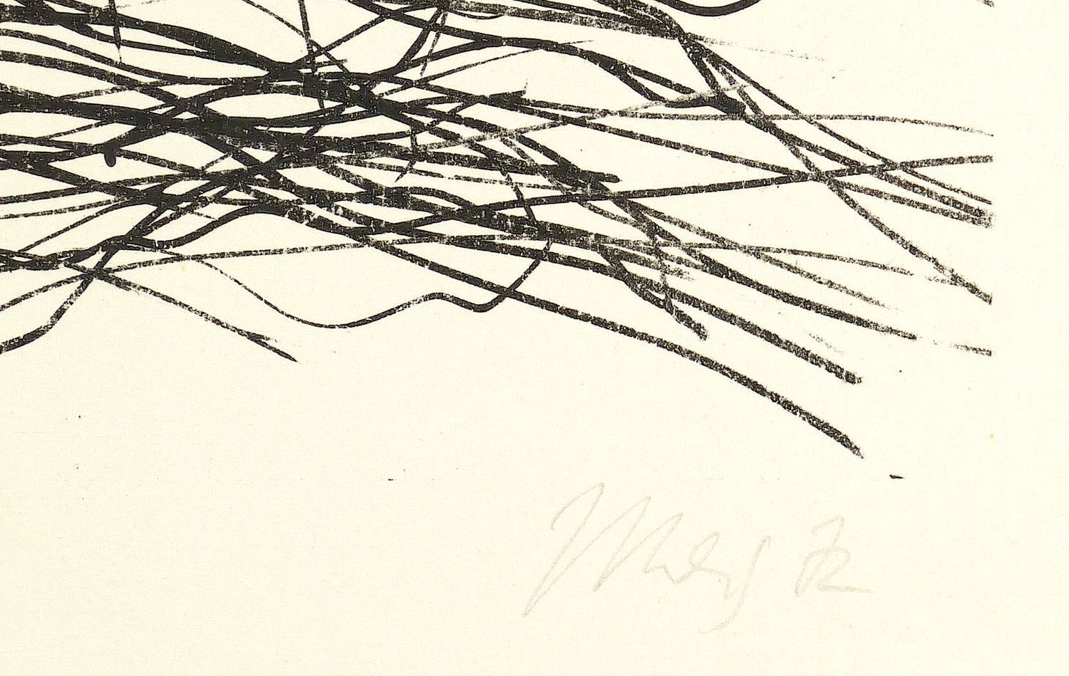 1972. Lithografie / Pinsellithografie, in Schwarz, auf Maschinenbütten. – Originale Künstlergrafik, von Max Uhlig. – Vorzugsdruck. – 25,7 x 41,5 cm (Darstellung / Stein), 46 x 50 cm (Blatt).