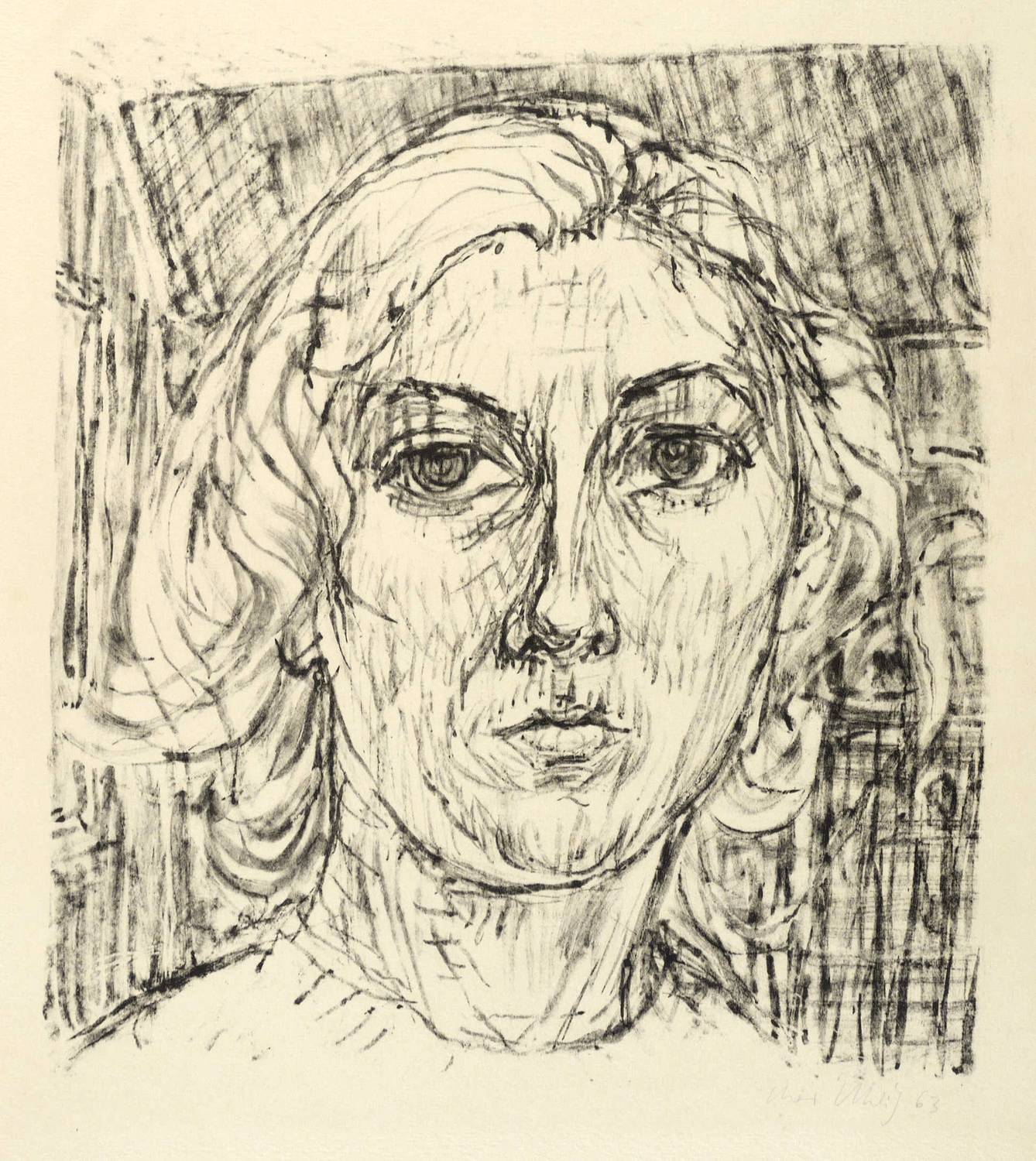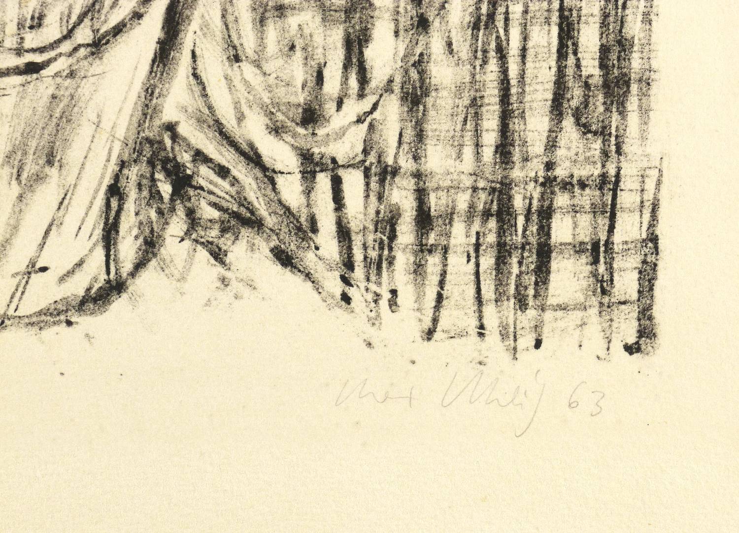 Nicht bei Oesinghaus. – Rechts unten in Bleistift signiert und datiert. In der rechten unteren Blattecke eigenhändige Widmung: ″für Mutter zu Weihnachten 1963″. – Seltenes Frühwerk des Künstlers. – Ecke rechts unten bestoßen. Sonst guter Zustand.