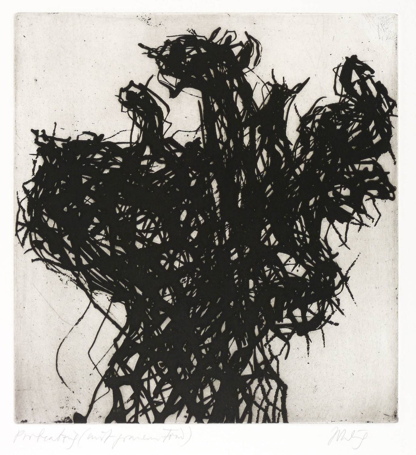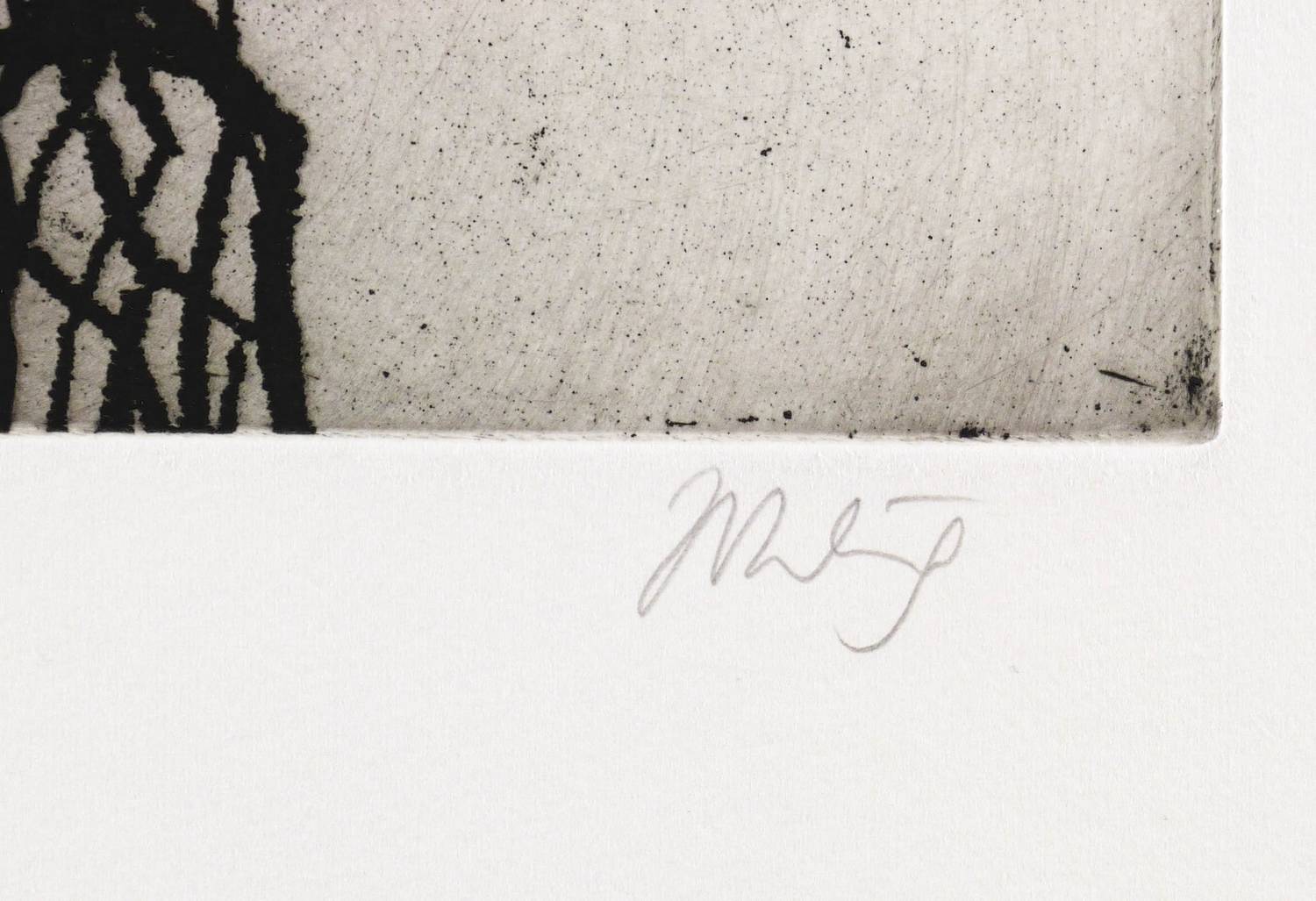 1994-1999. Radierung / Strichätzung & Aquatinta, in Schwarz, mit Plattenton, auf hellchamois BFK-Rives-Bütten. – Originale Künstlergrafik, von Max Uhlig. – Probedruck. – 28,4 x 26,6 cm (Darstellung / Platte), 54 x 38 cm (Blatt).