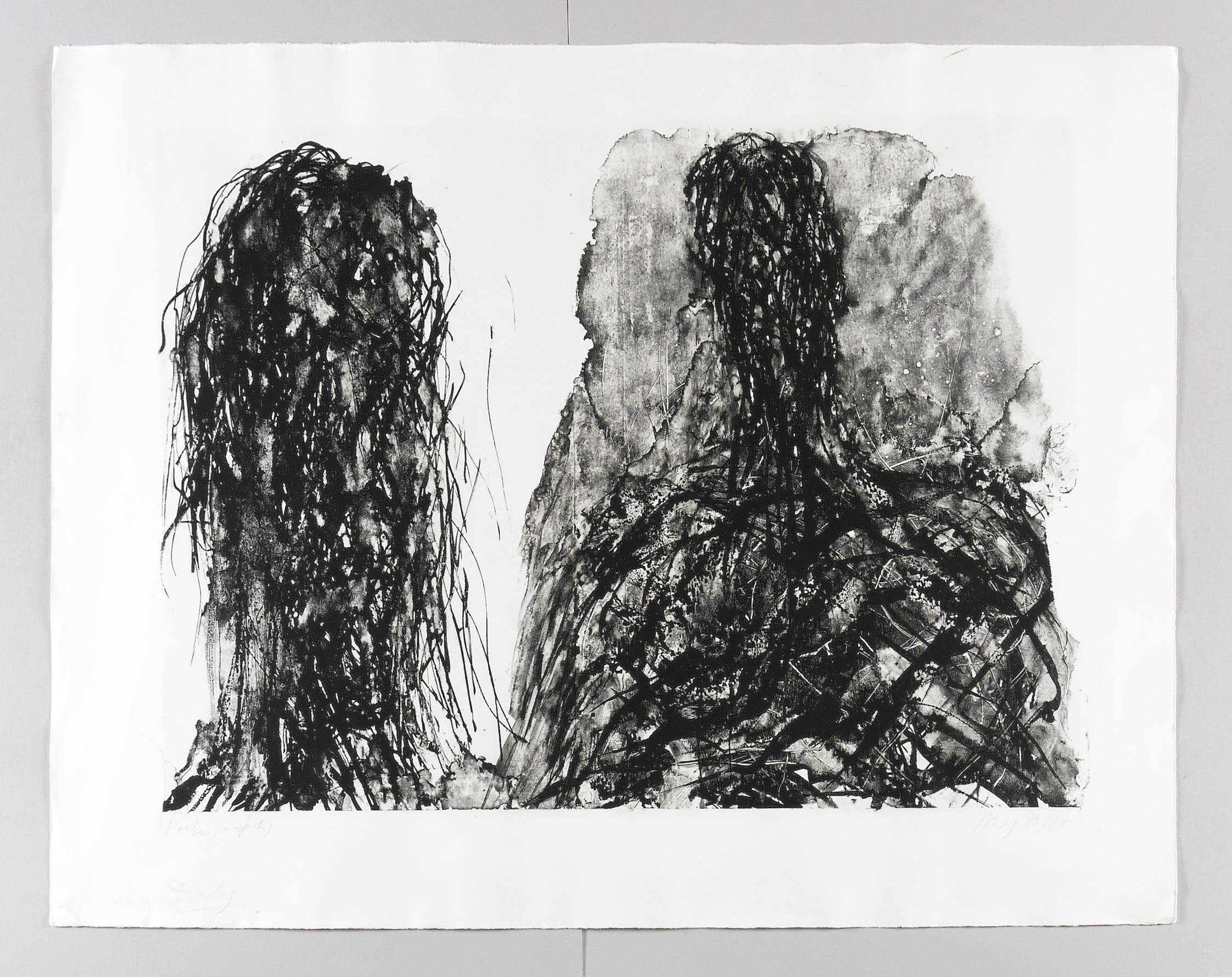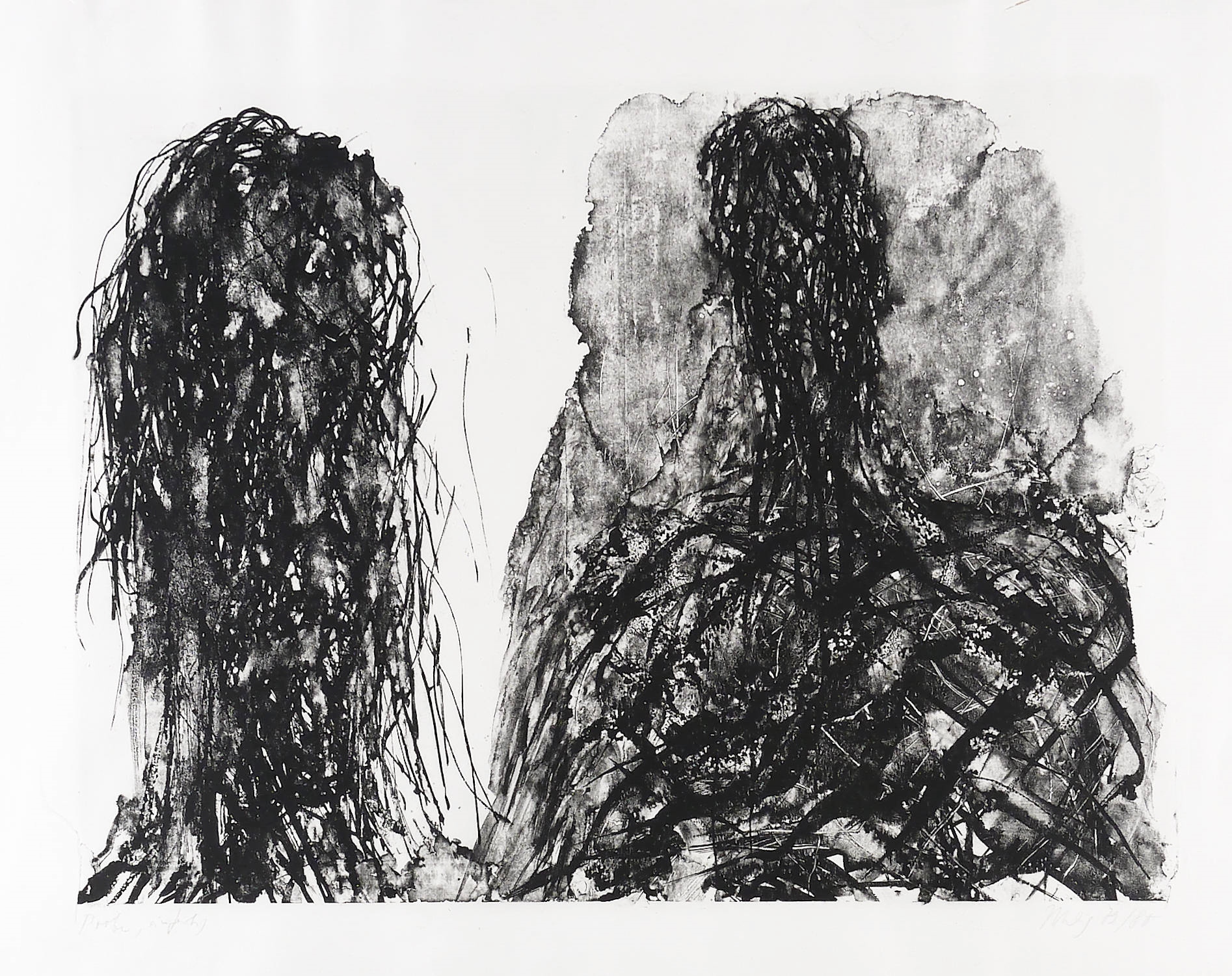 1979/1980. Lithografie / Pinsellithografie, in Schwarz, auf weichem hellchamois Hahnemühle. – Originale Künstlergrafik, von Max Uhlig. – Probedruck. – 56,0 x 76,0 cm (Darstellung / Stein), 73 x 93 cm (Blatt).
