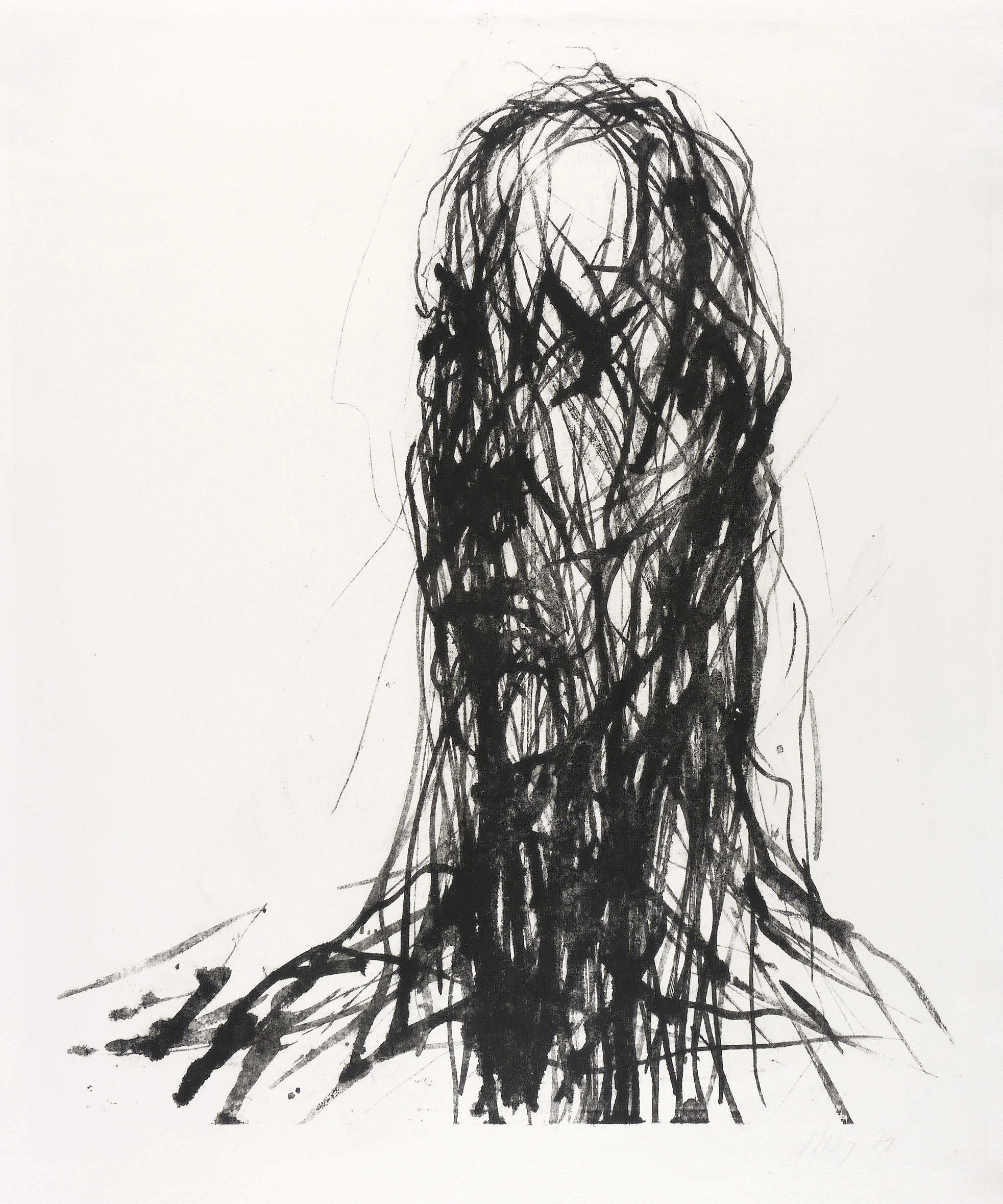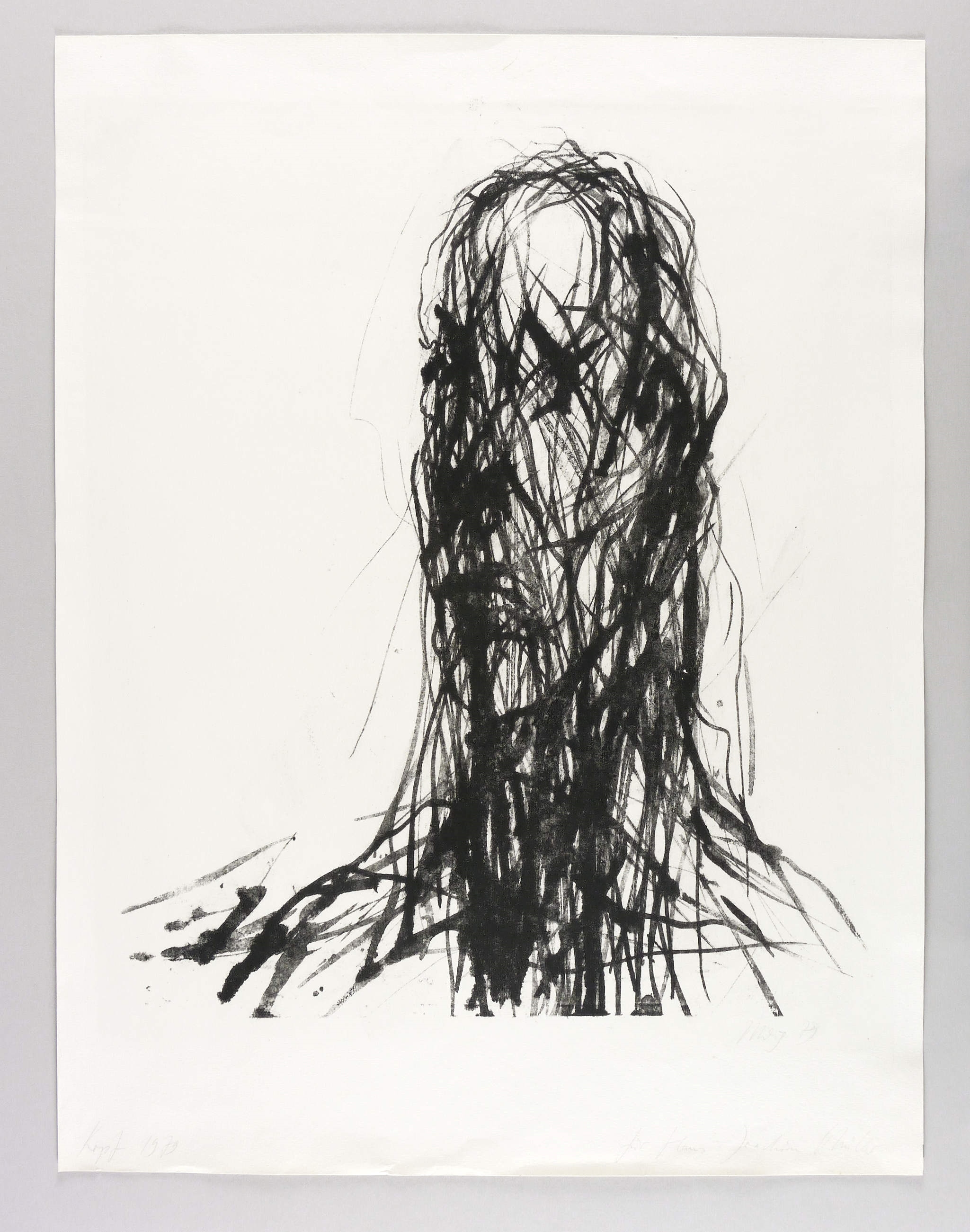 1979. Lithografie / Pinsellithografie, in Schwarz, auf hartem hellchamois Maschinenbütten. – Originale Künstlergrafik, von Max Uhlig. – 61,2 x 50,0 cm (Darstellung / Druckbild), 76 x 58 cm (Blatt).
