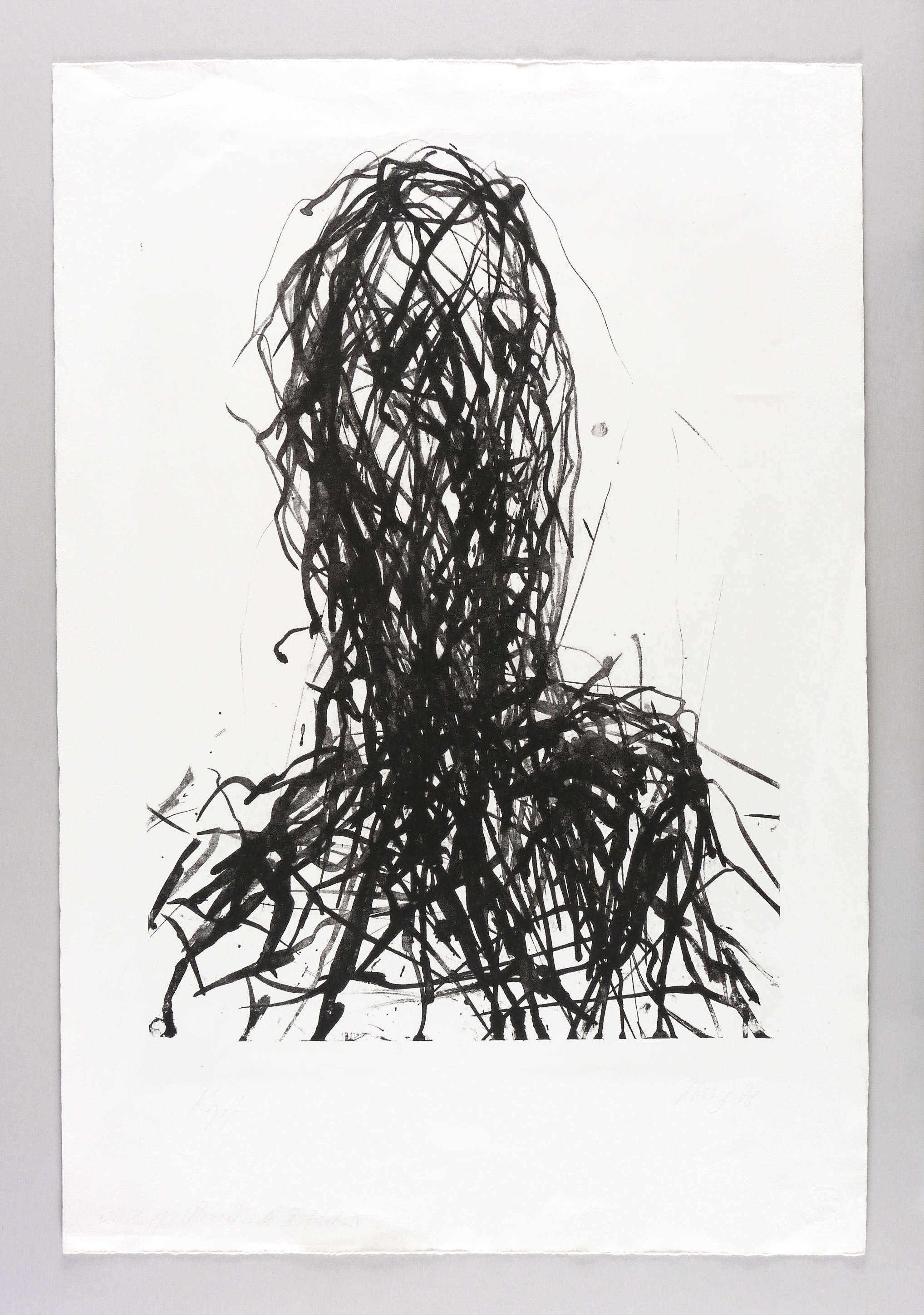 1978. Lithografie / Pinsellithografie, in Schwarz, auf weichem hellchamois Hahnemühle. – Originale Künstlergrafik, von Max Uhlig. – Probedruck. – 59,2 x 42,0 cm (Darstellung / Druckbild), 79 x 54 cm (Blatt).