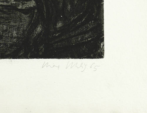 Oesinghaus 16. – Aus: Huldigung an die Musik. 1. Druck der Kabinettpresse (Berlin: Kabinettpresse 1965). – Rechts unten in Bleistift signiert und datiert: ″Max Uhlig 65″. – Wesentliche Arbeit aus dem Frühwerk des Künstlers. – Dichte atmosphärische Stimmung. – Ohne Tadel. Sehr guter Zustand.