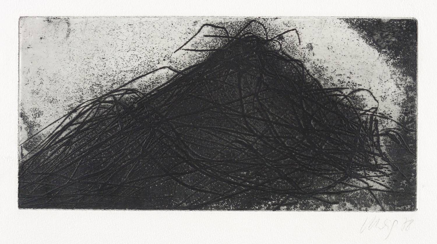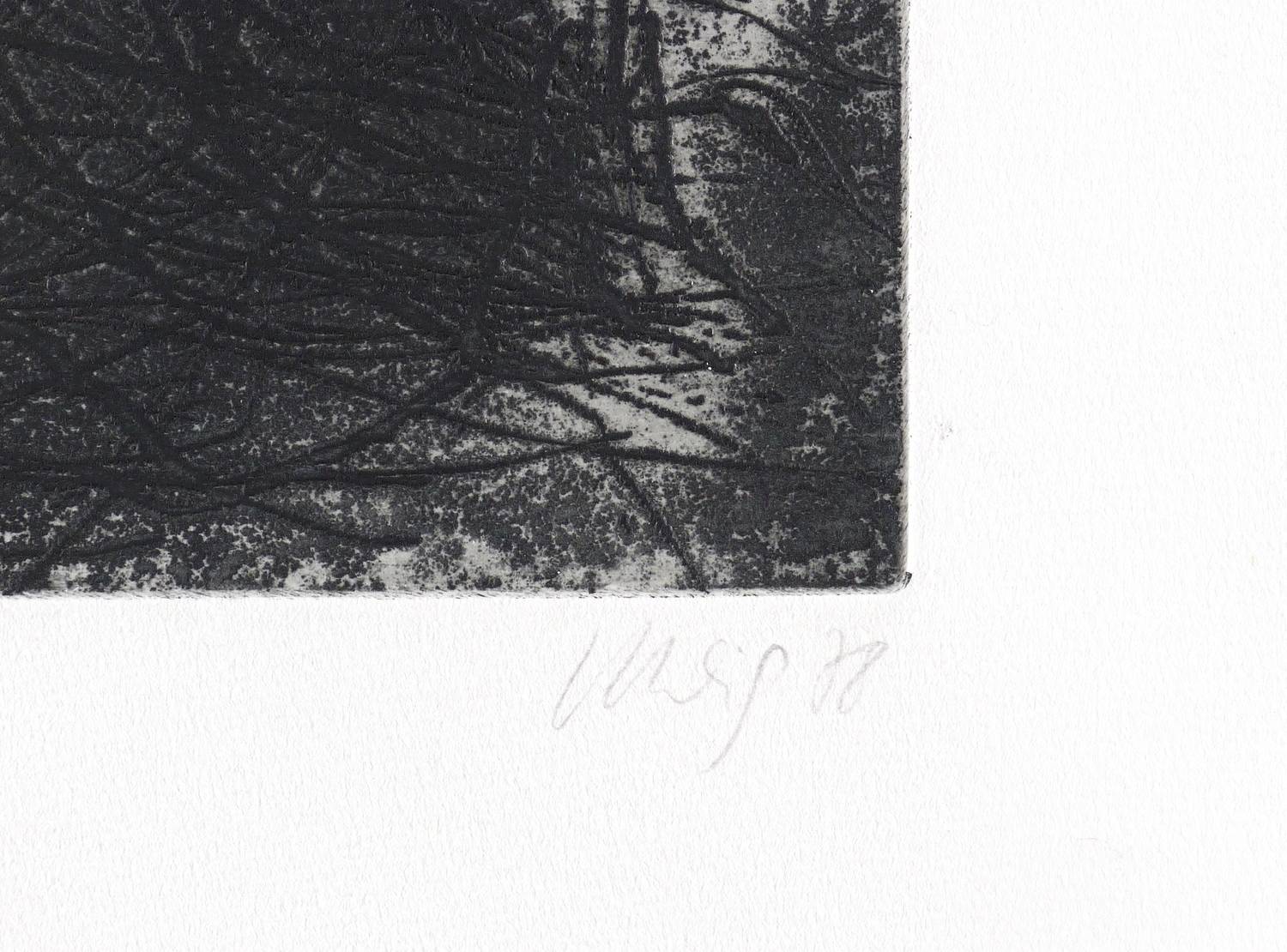 1978. Radierung / Strichätzung & Aquatinta, in Schwarz, auf chamois Hahnemühle. – Originale Künstlergrafik, von Max Uhlig. – 10,9 x 22,3 cm (Darstellung / Platte), 18 x 33 cm (Blatt).