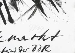 Oesinghaus [230]. – Rechts unten in Bleistift signiert: ″Uhlig″. Links Auflagenbezeichnung: ″Probe 2. Abzug″. – Originalgrafisches Künstlerplakat zur Ausstellung ″Max Uhlig″ in der Galerie Arkade in Berlin im Dezember 1979. – Sehr guter Zustand.
