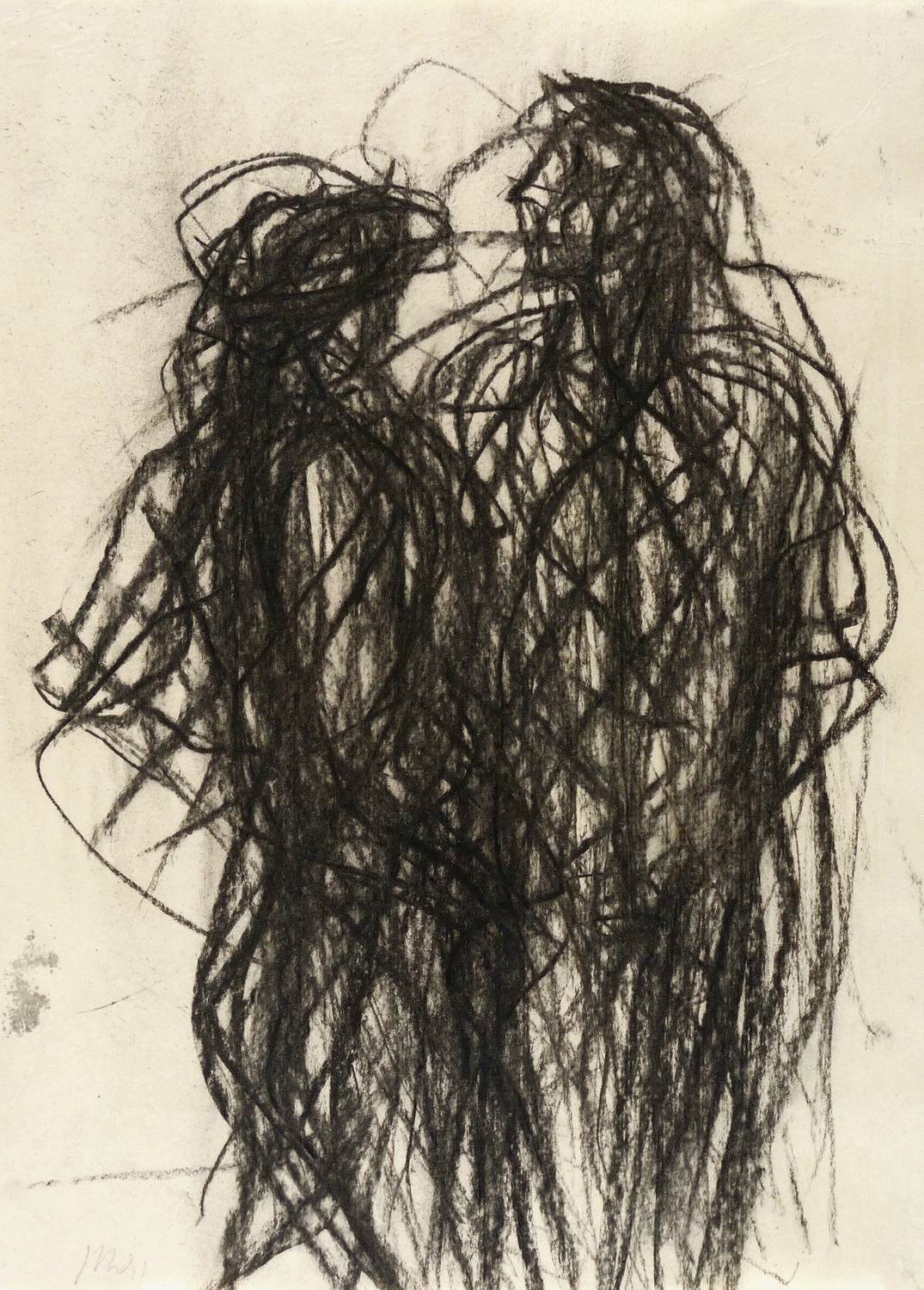 Um 1985. Zeichnung / Kohle, auf rauem gelbem Velin. – Originale Künstlergrafik, von Max Uhlig. – Unikat. – 46,0 x 33,5 cm (Darstellung / Blatt).